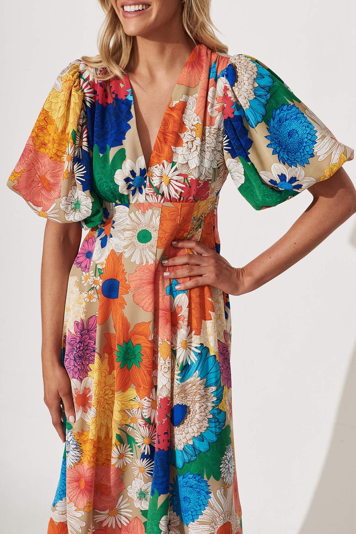 Daydreamer Midi Dress In Bright Multi Floral
