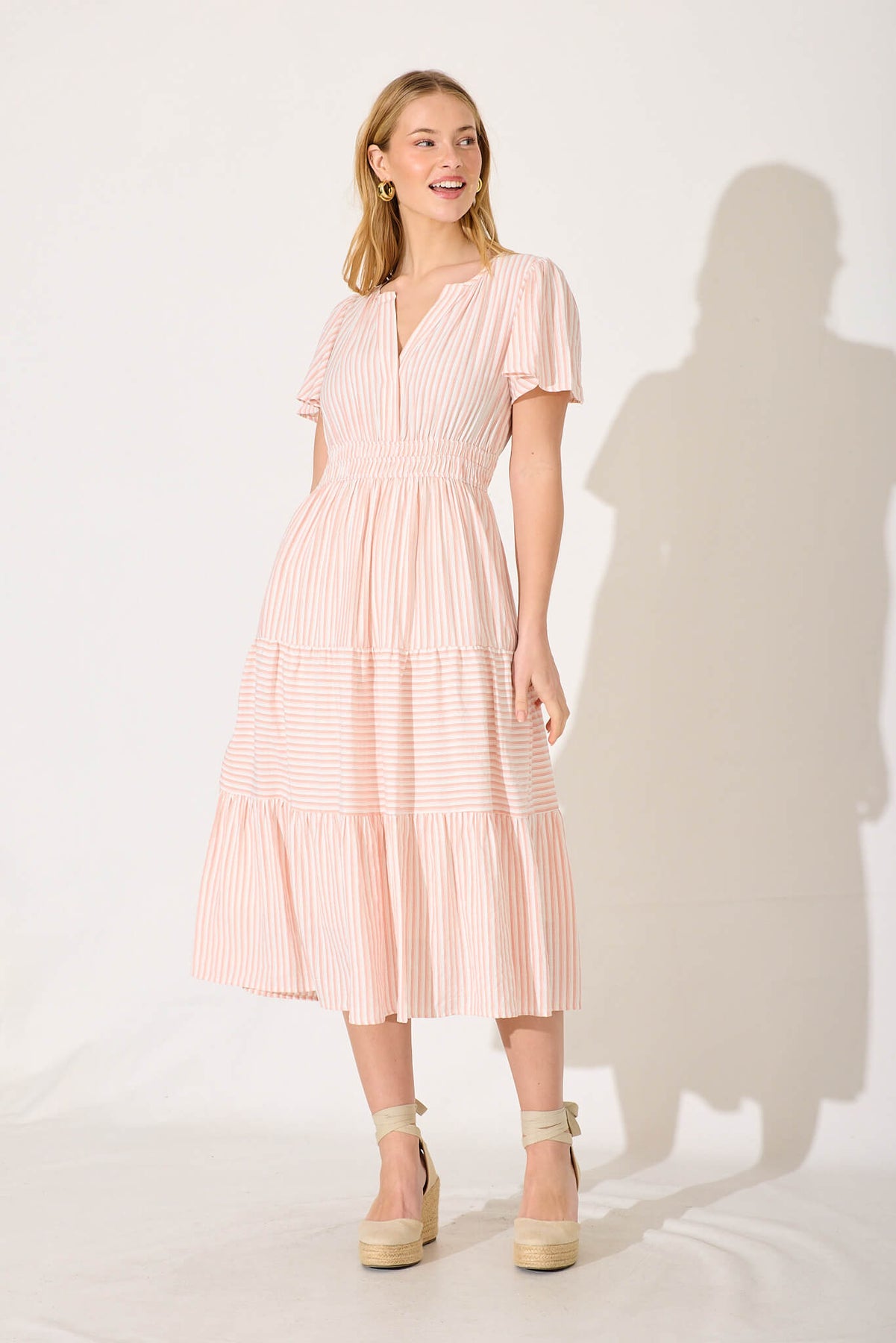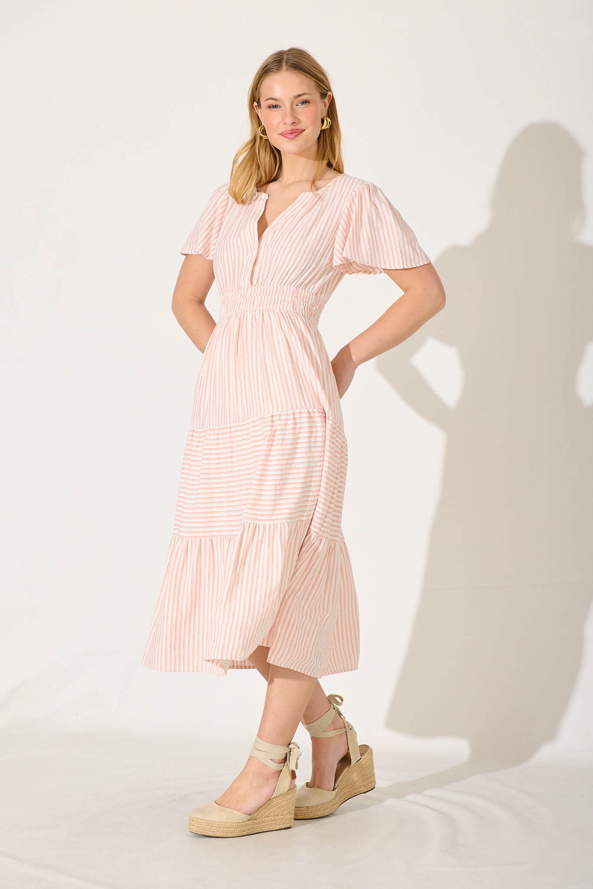Effortlessly stylish and perfect for any casual occasion, our Utopia Midi Dress is a must-have addition to your wardrobe! It's the perfect throw on and go for those days you feel like you have nothing to wear. Looks great styles with a pair of tan strappy sandals, canvas tote and sunglasses!