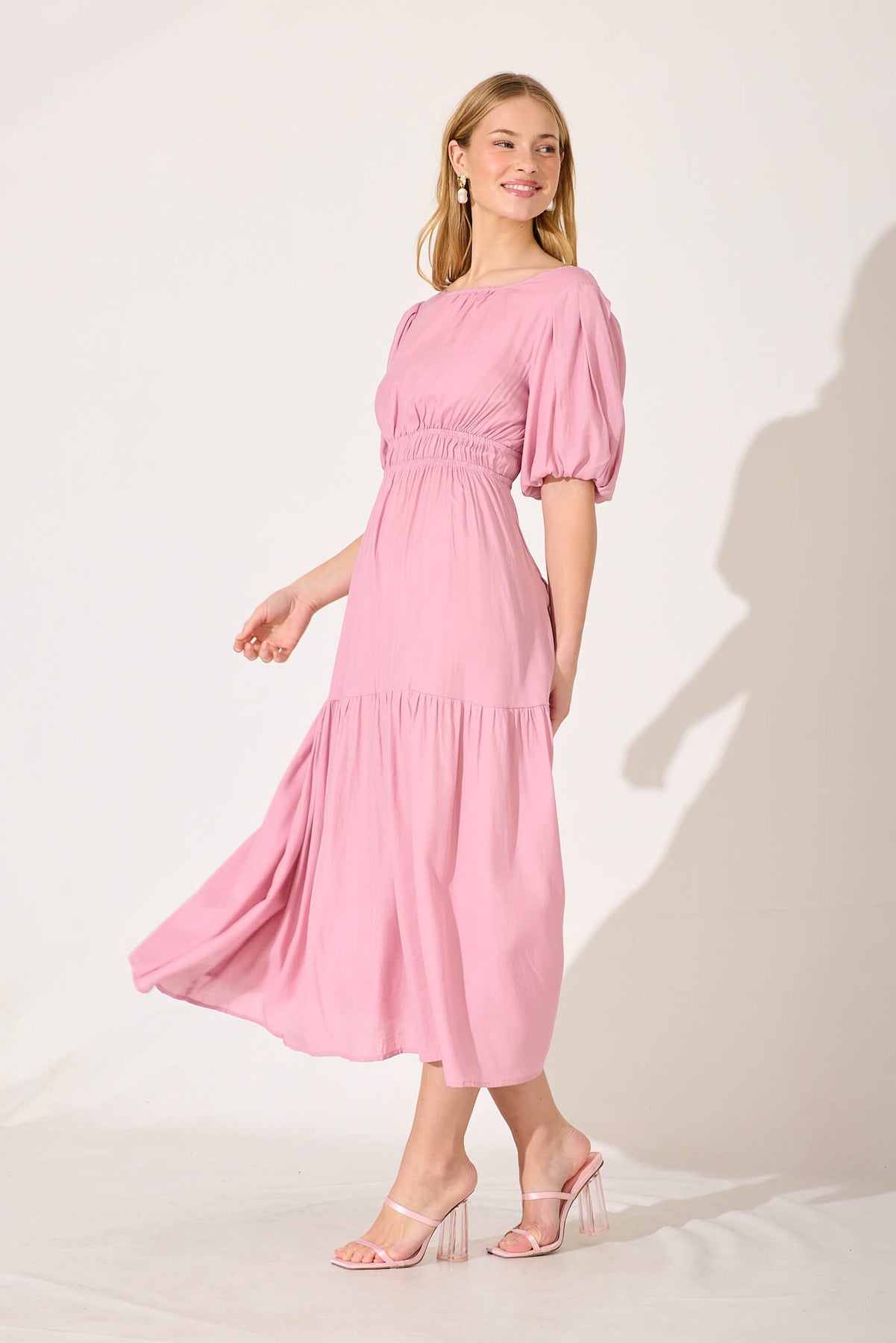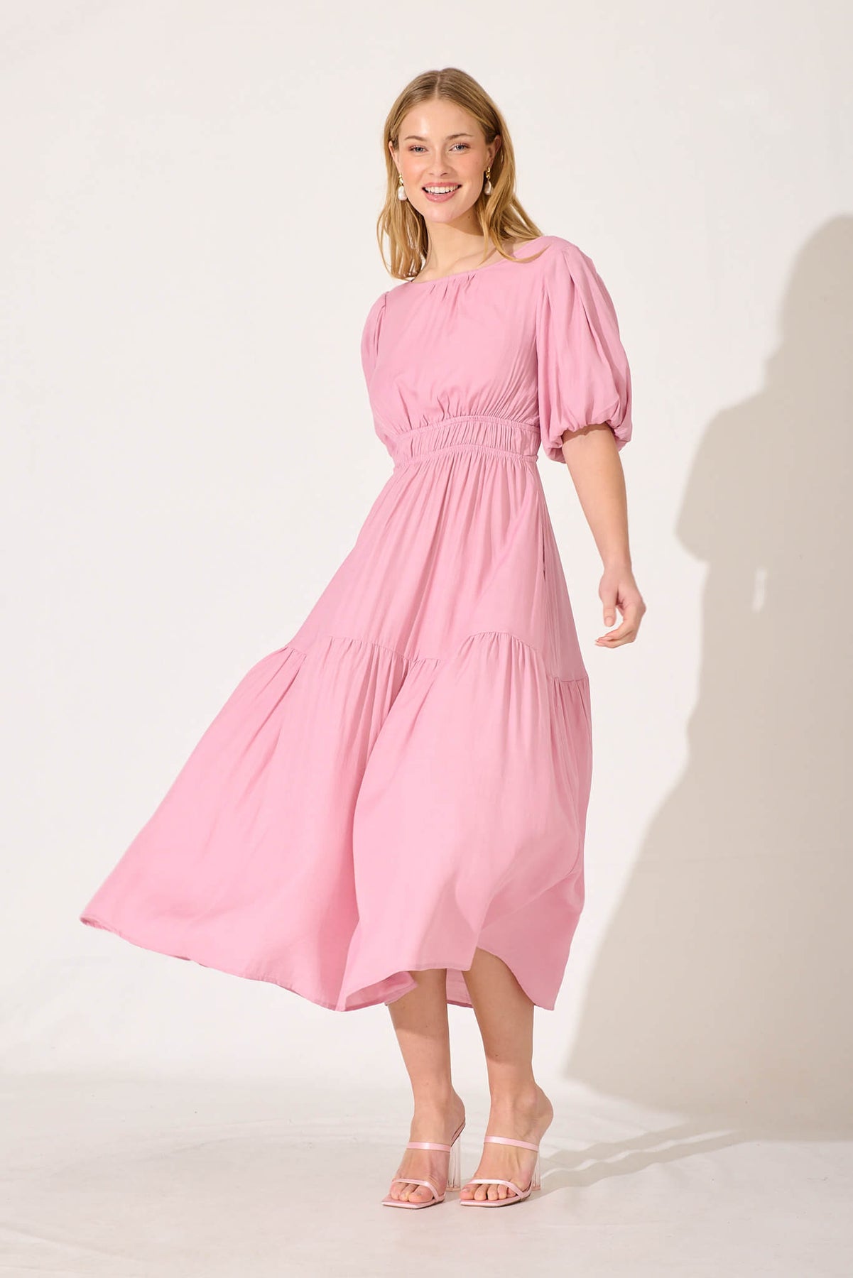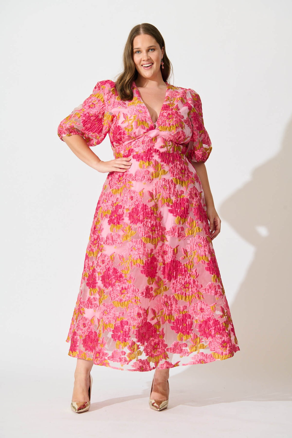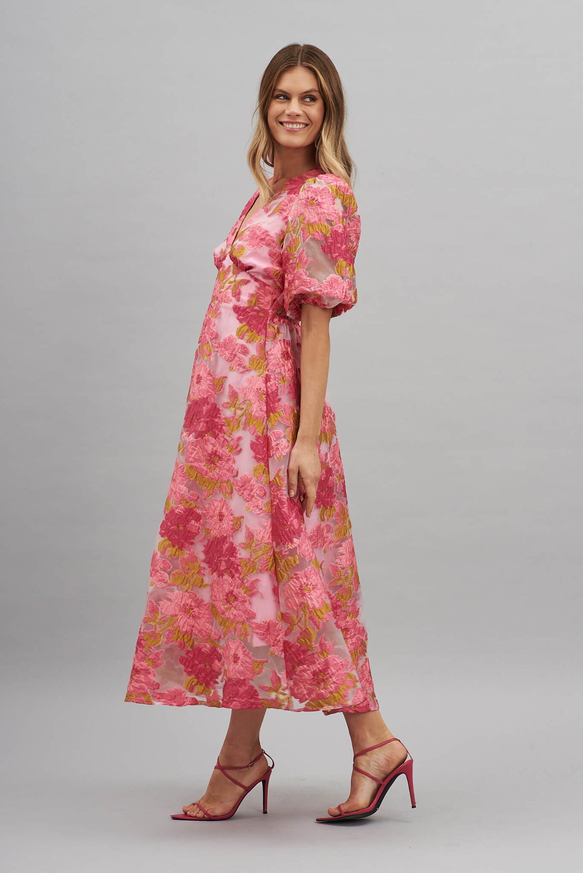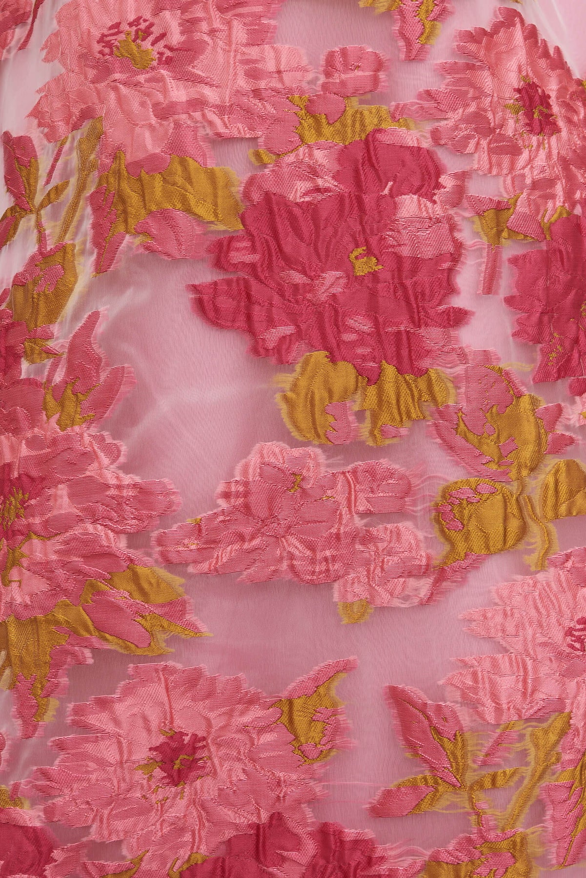 Opulence Midi Dress In Pink Floral Organza Burnout