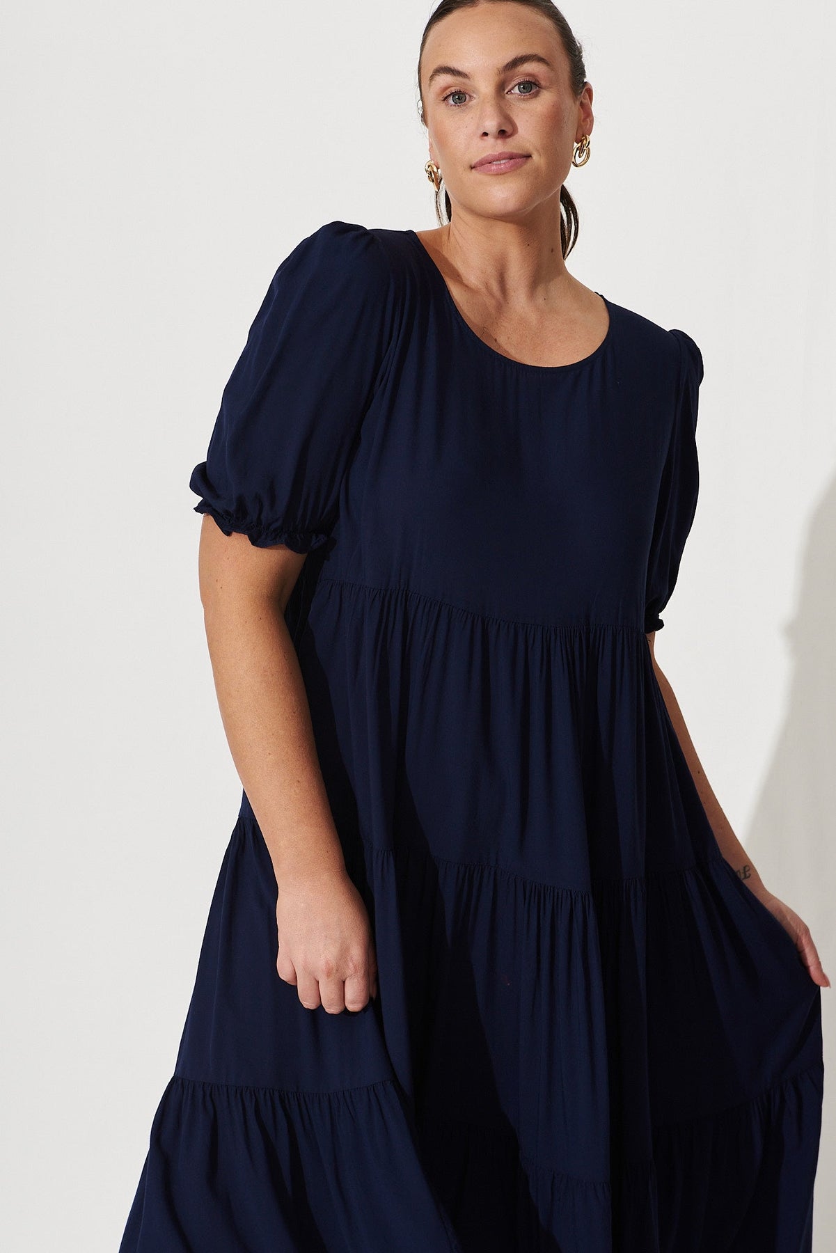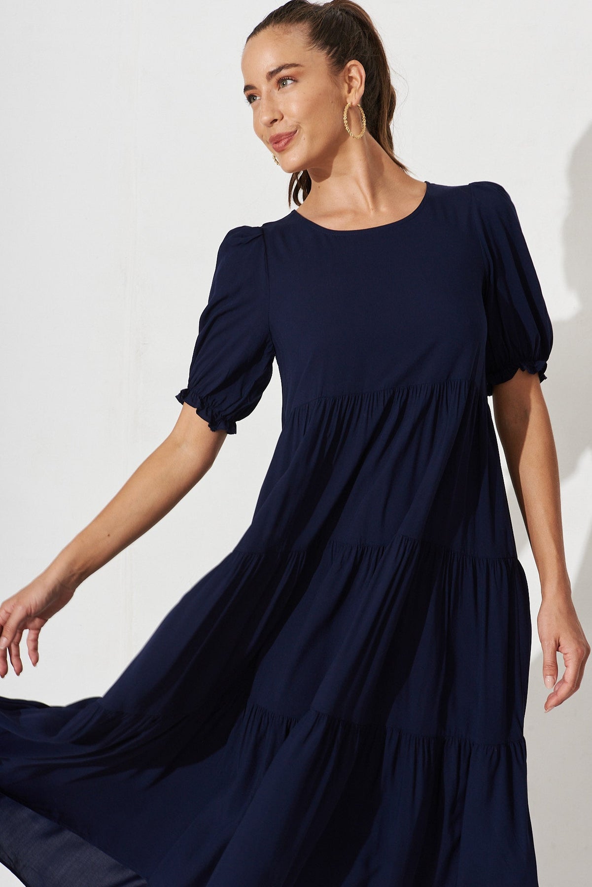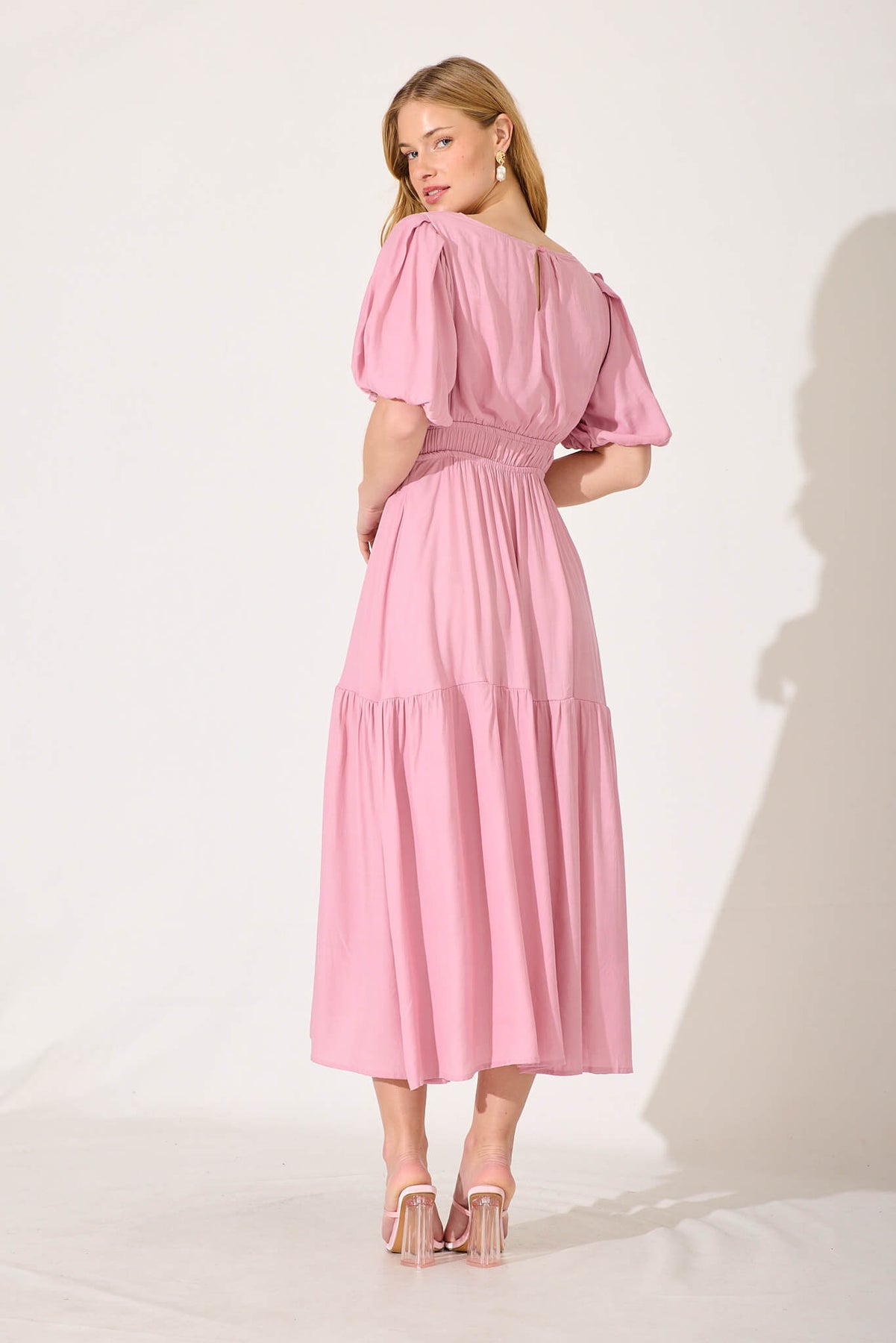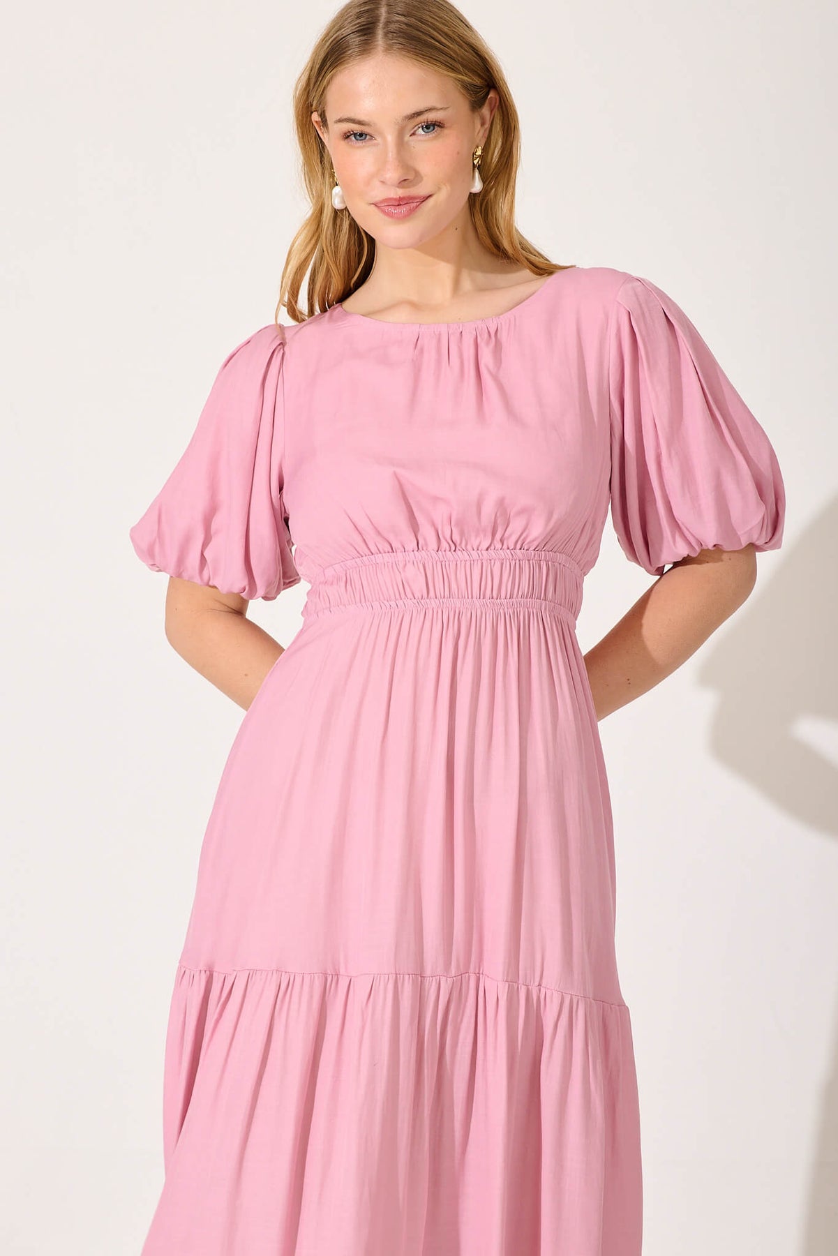 Our Velletri Midi Dress is the ultimate summer get up! With gorgeous puff sleeves & a tiered skirt, top off the look with sandals or heels & a bold red lip!