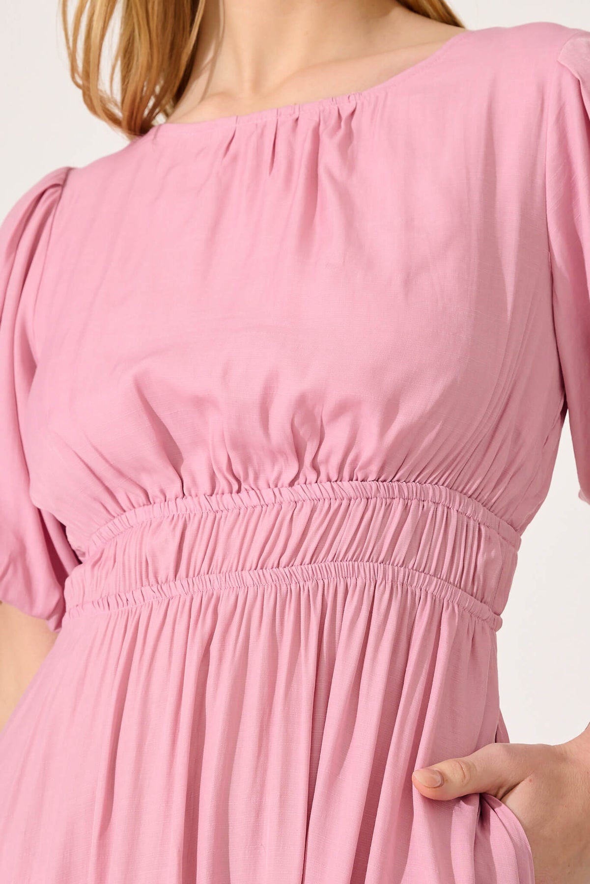 Indulge in the effortless elegance of our Spring Afternoon Midi Smock Dress. This flowy piece features a captivating hue that adds a touch of sophistication. The lightweight, breathable fabric ensures comfort on even the warmest days.