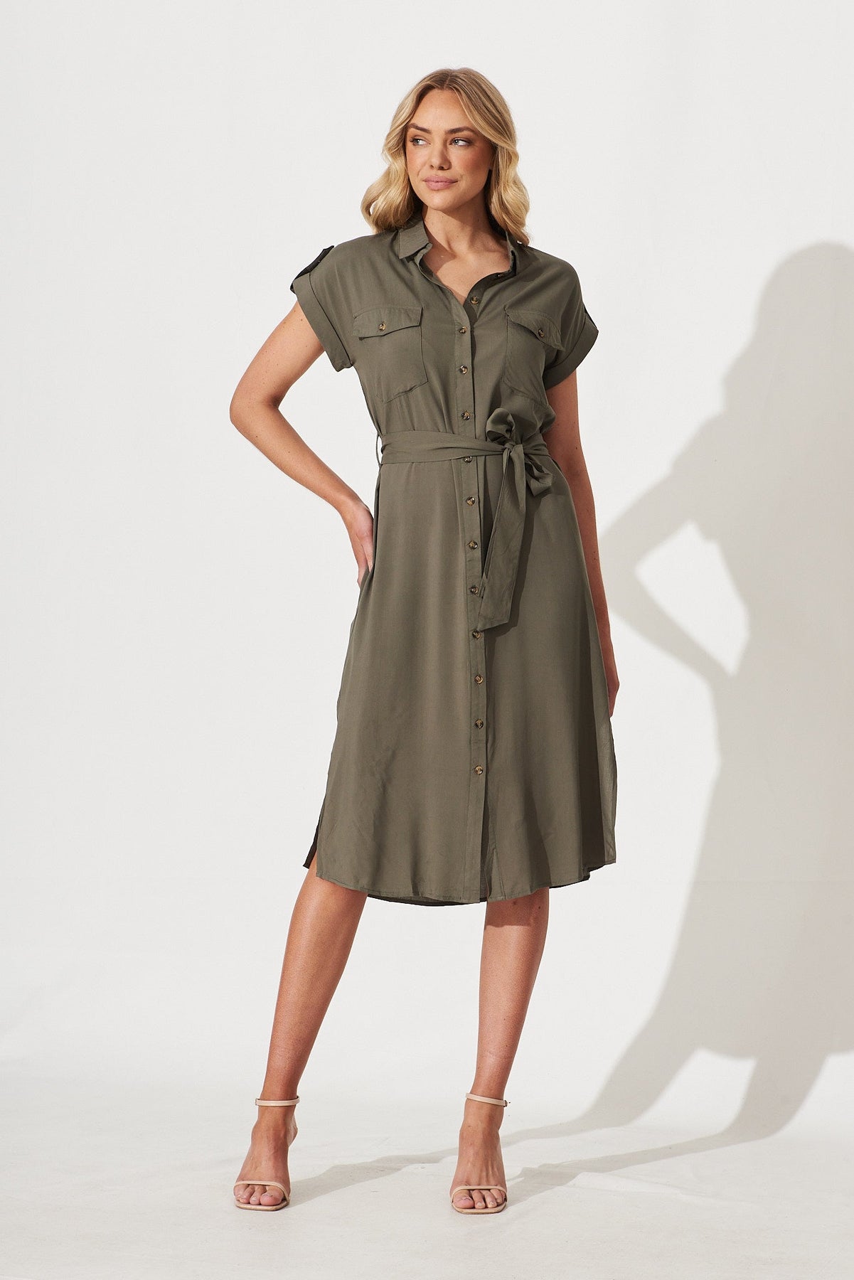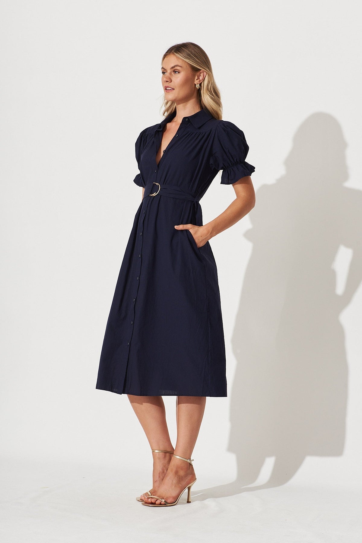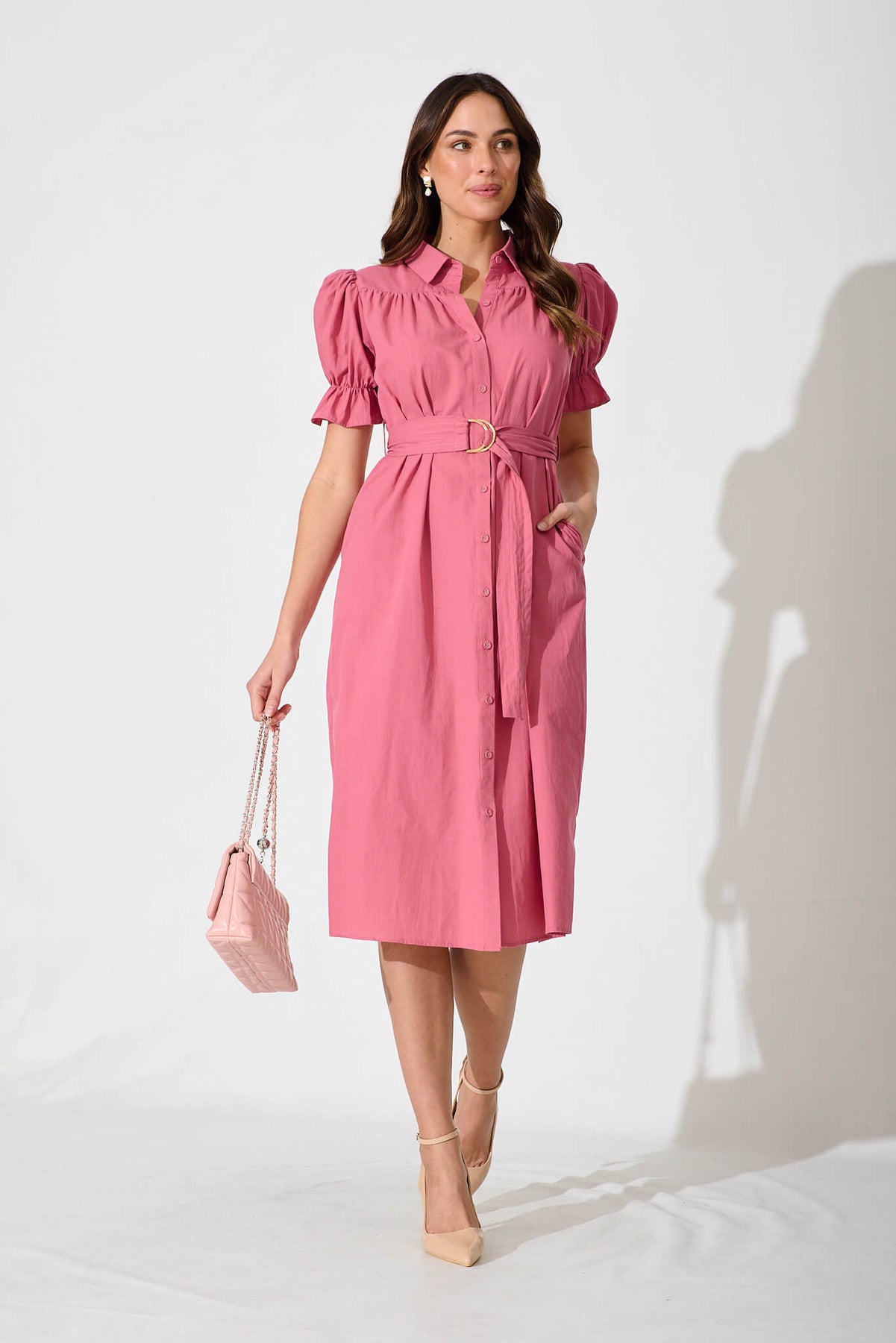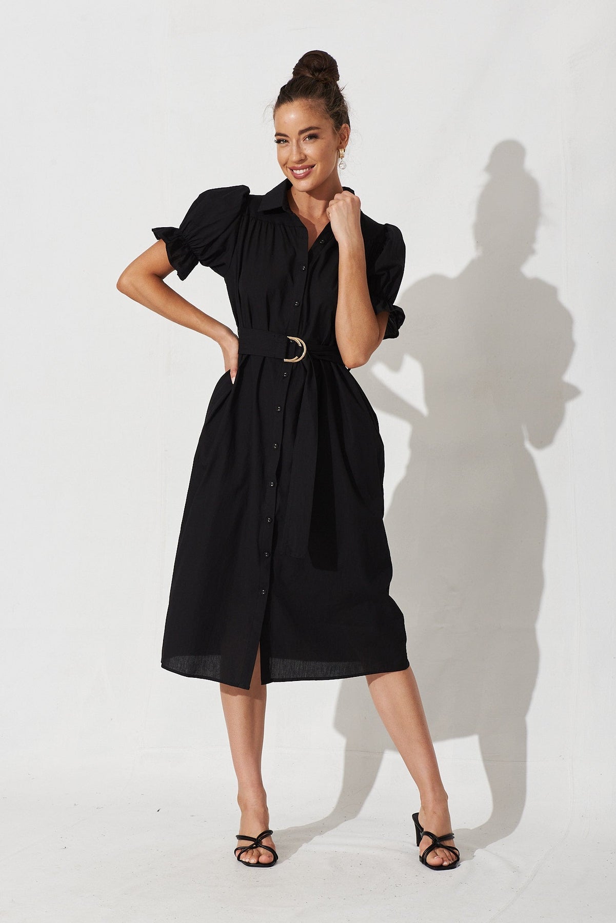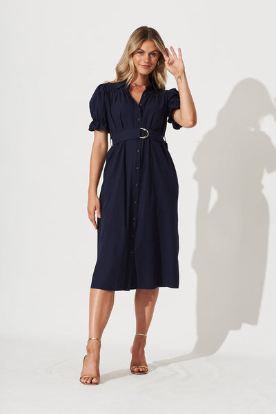 Elevate your dress collection with our Sinatra Midi Shirt Dress. Cut from breathable cotton blended fabric, this dress features a waistline sash, collared neckline and button up front. Wear it with your favourite strappy heels, go-to denim and everyday tote bag.