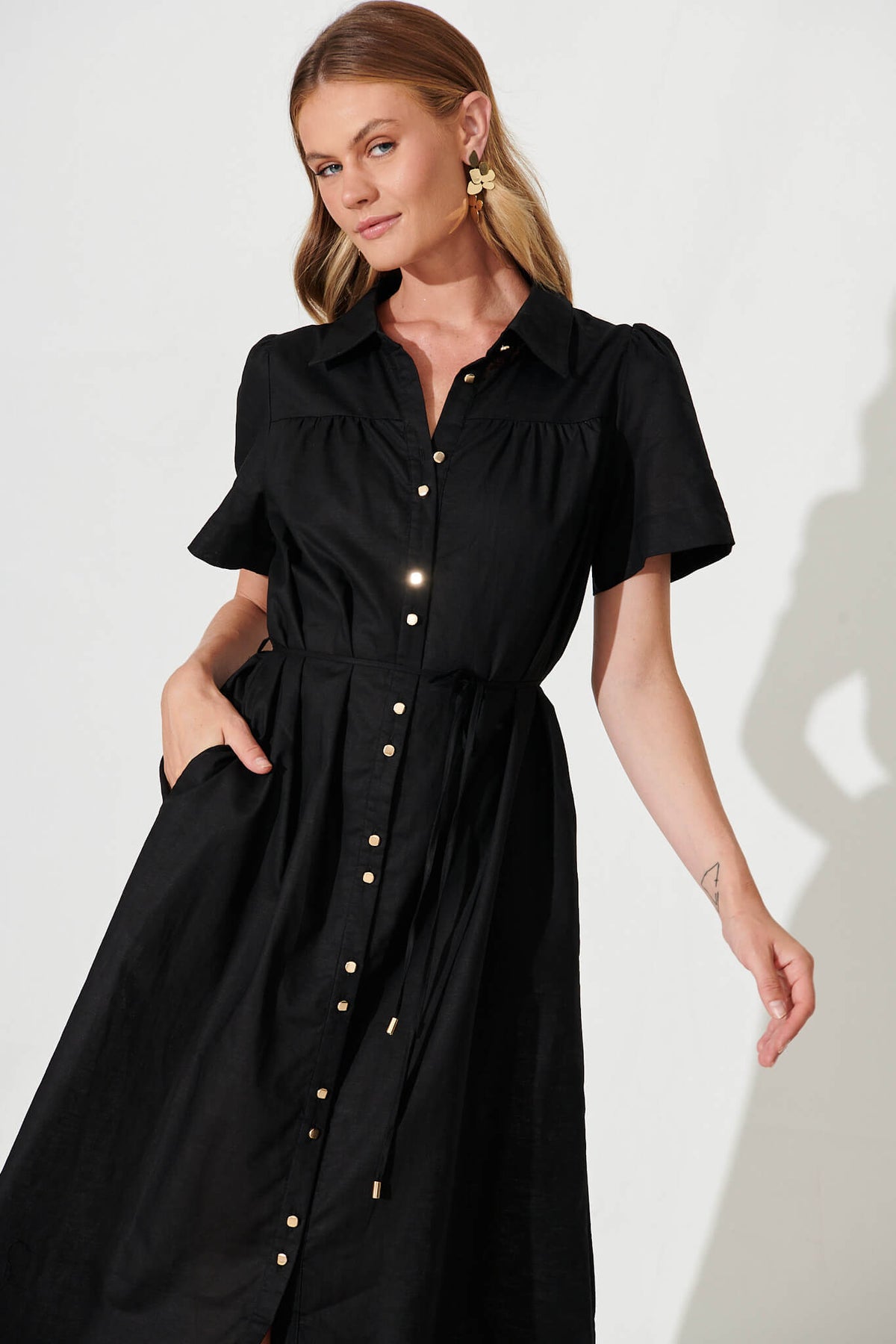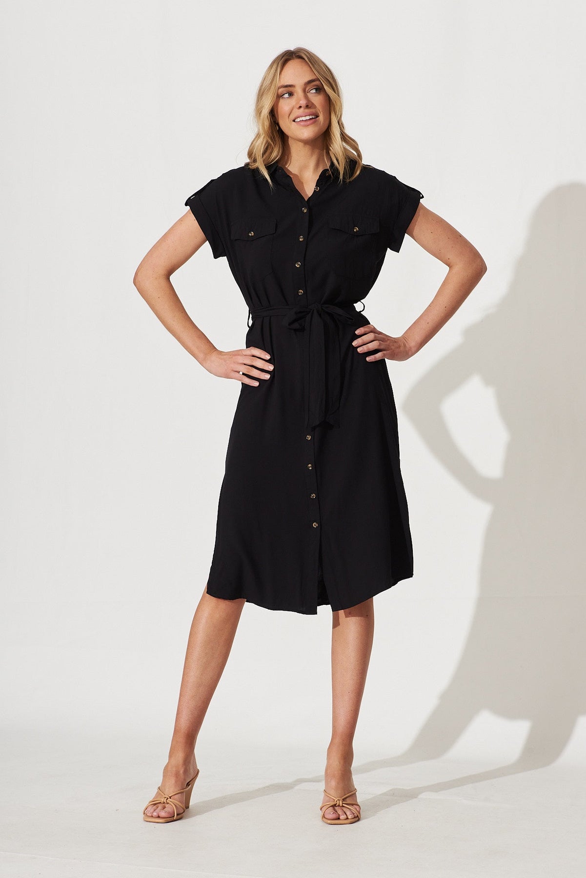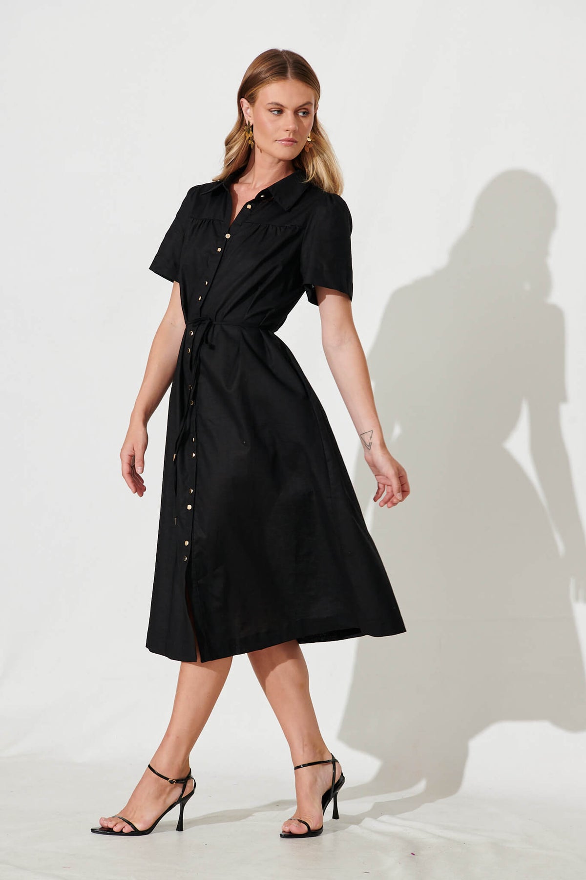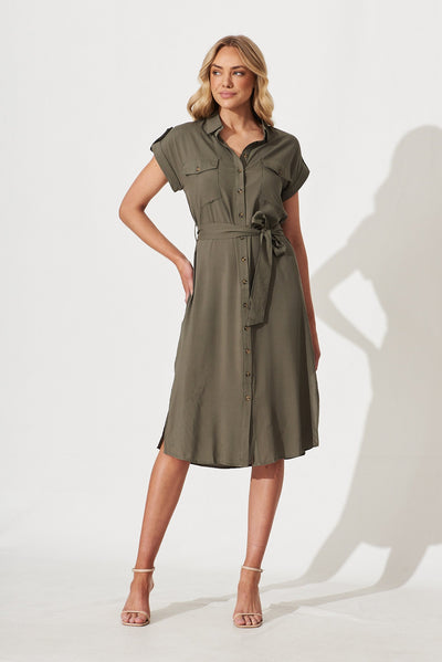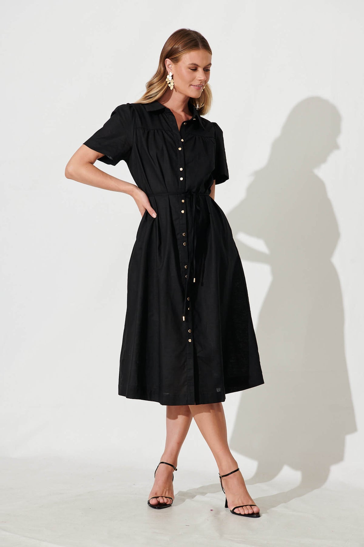 Elevate your dress collection with our Sinatra Midi Shirt Dress. Cut from breathable cotton blended fabric, this dress features a waistline sash, collared neckline and button up front. Wear it with your favourite strappy heels, go-to denim and everyday tote bag.