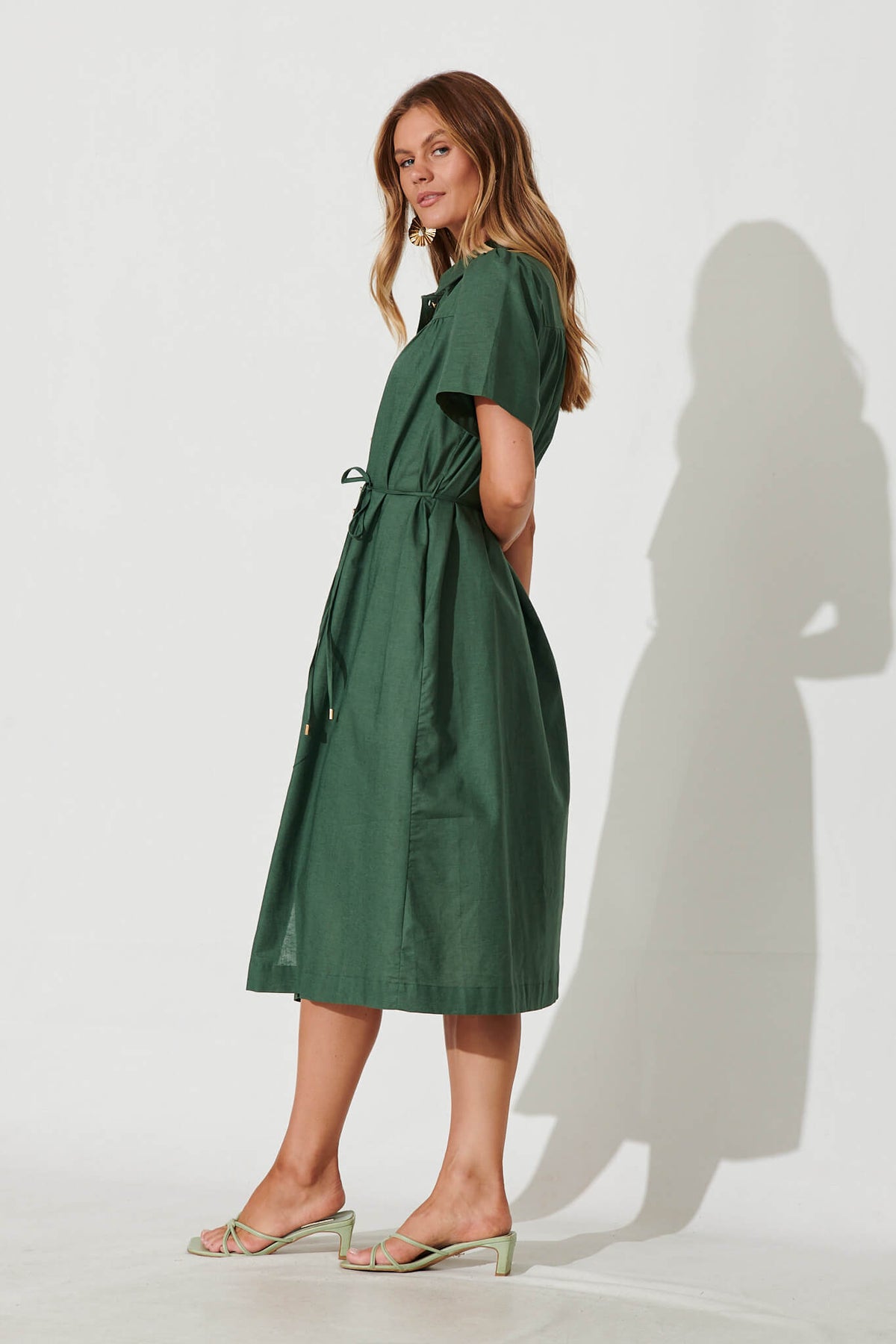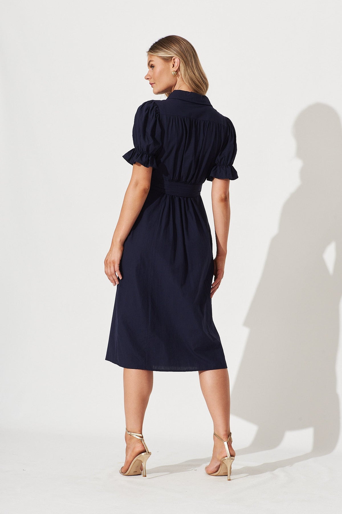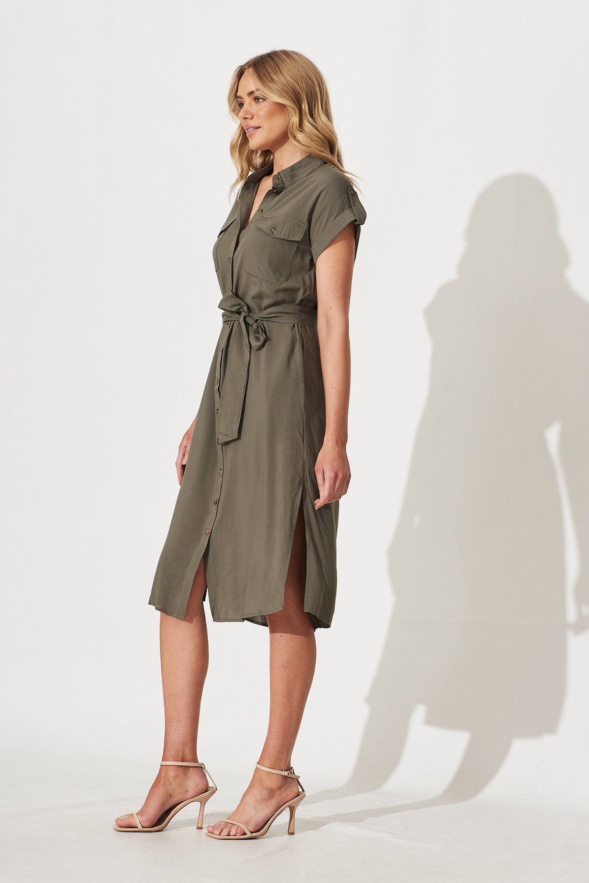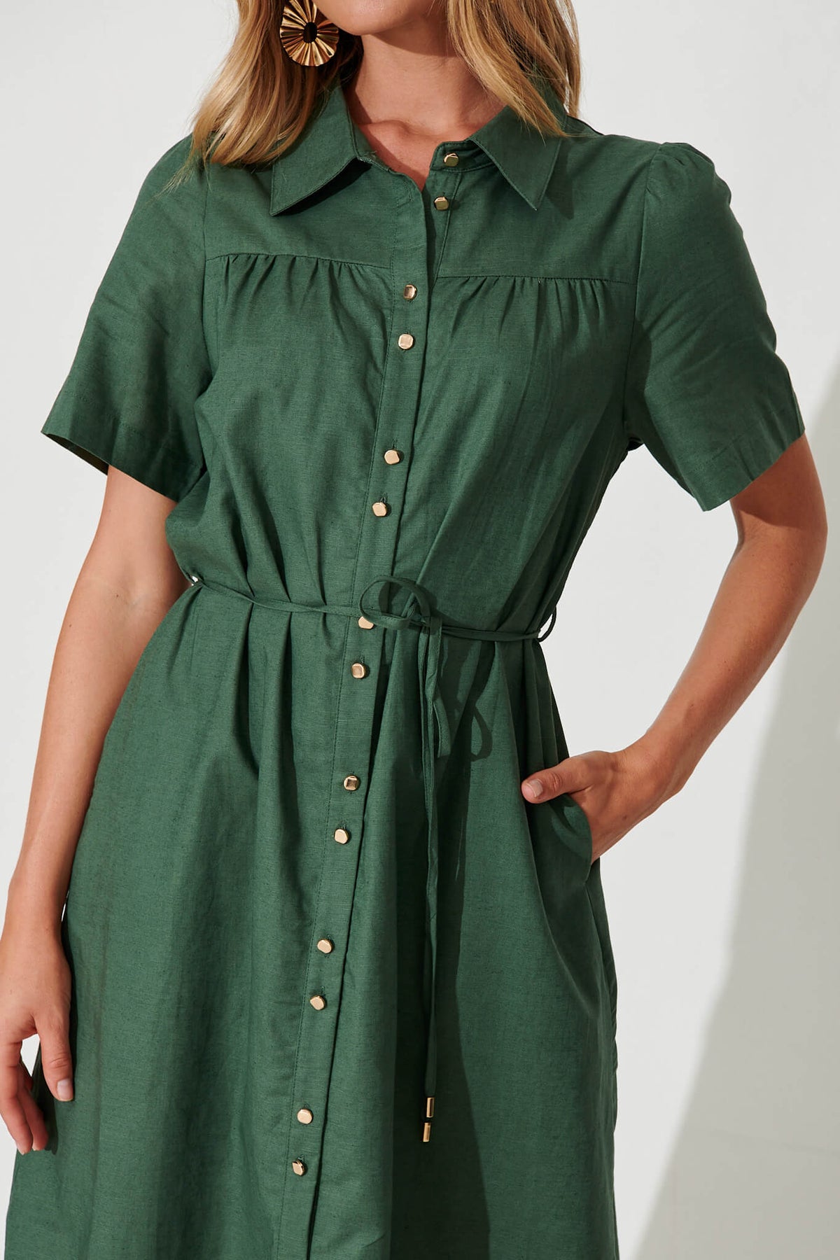 Elevate your dress collection with our Sinatra Midi Shirt Dress. Cut from breathable cotton blended fabric, this dress features a waistline sash, collared neckline and button up front. Wear it with your favourite strappy heels, go-to denim and everyday tote bag.