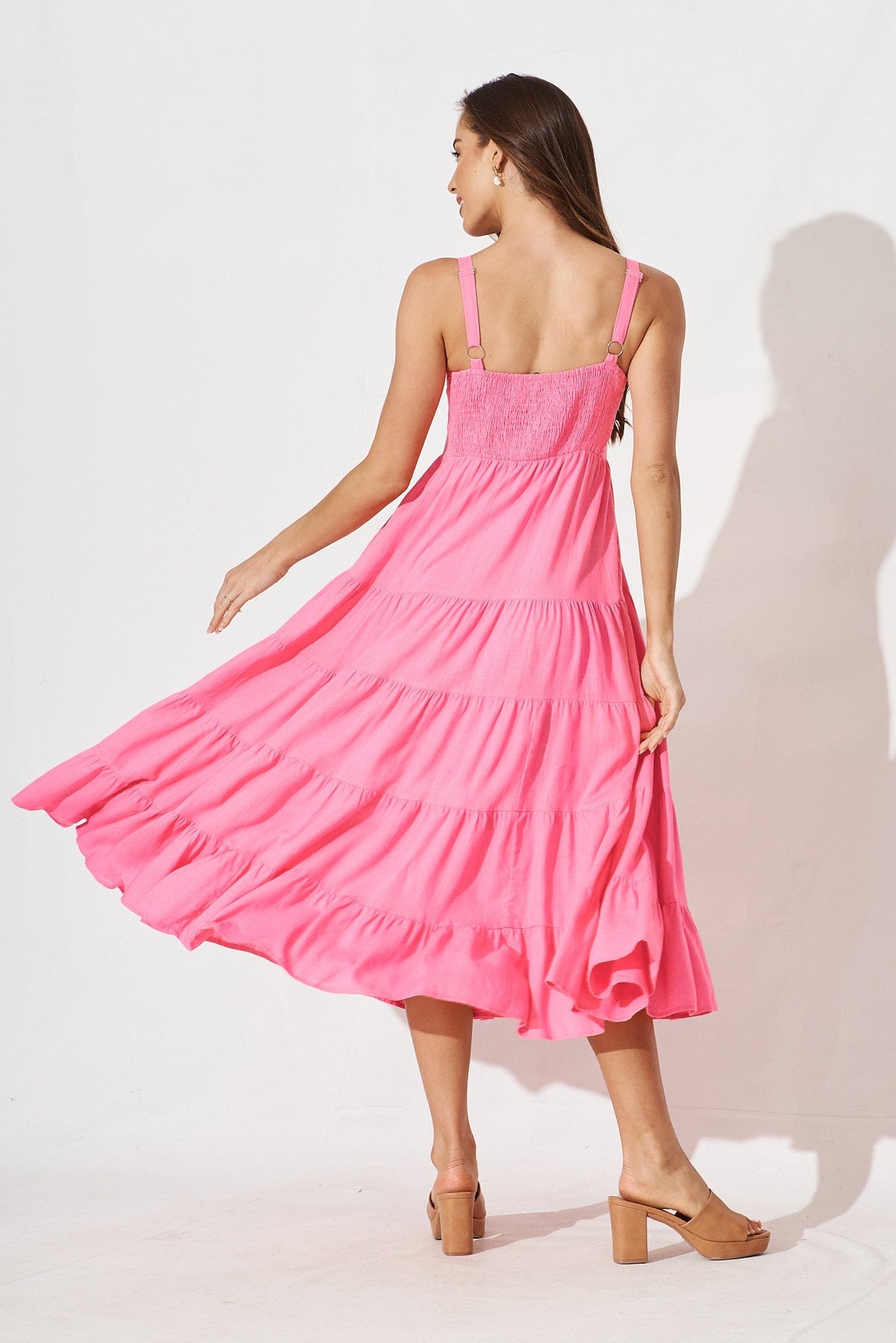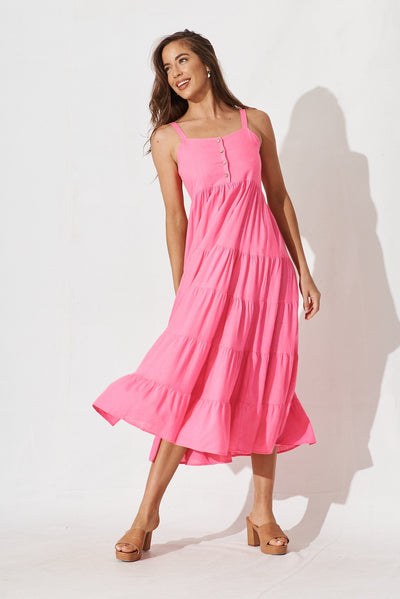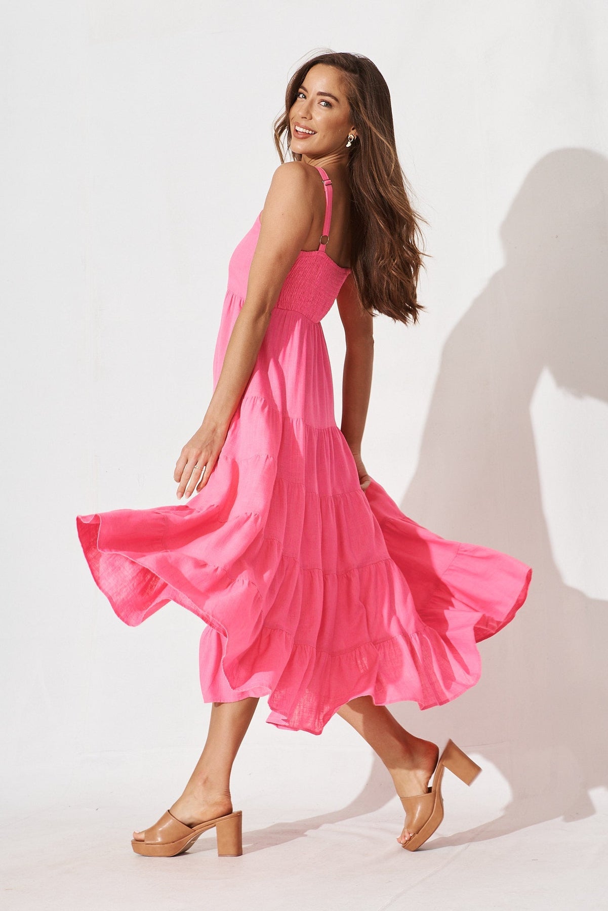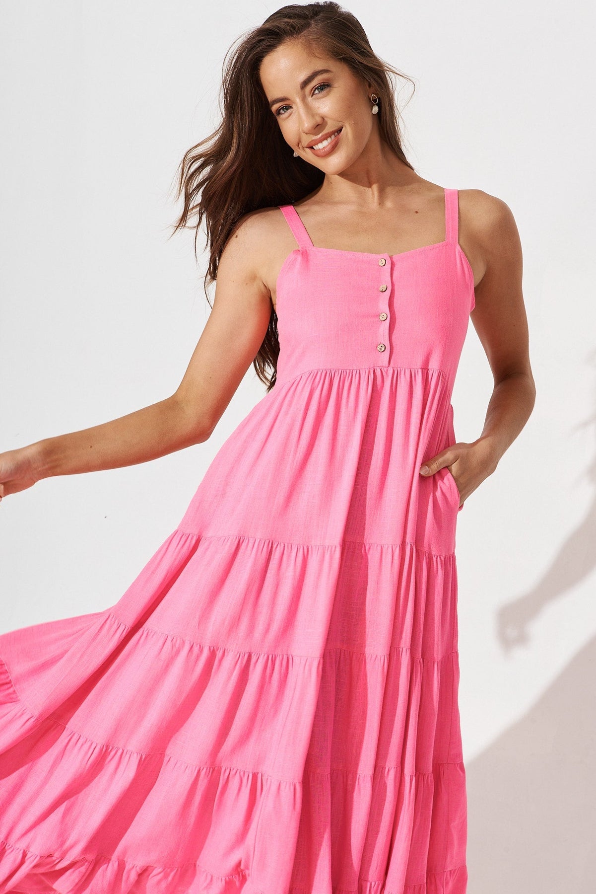 You can never go wrong with an elegant maxi like this! Featuring crisp frills and the indulgent pink, this dress is the perfect party piece. Style with understated jewelry for a killer evening look!