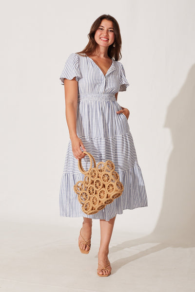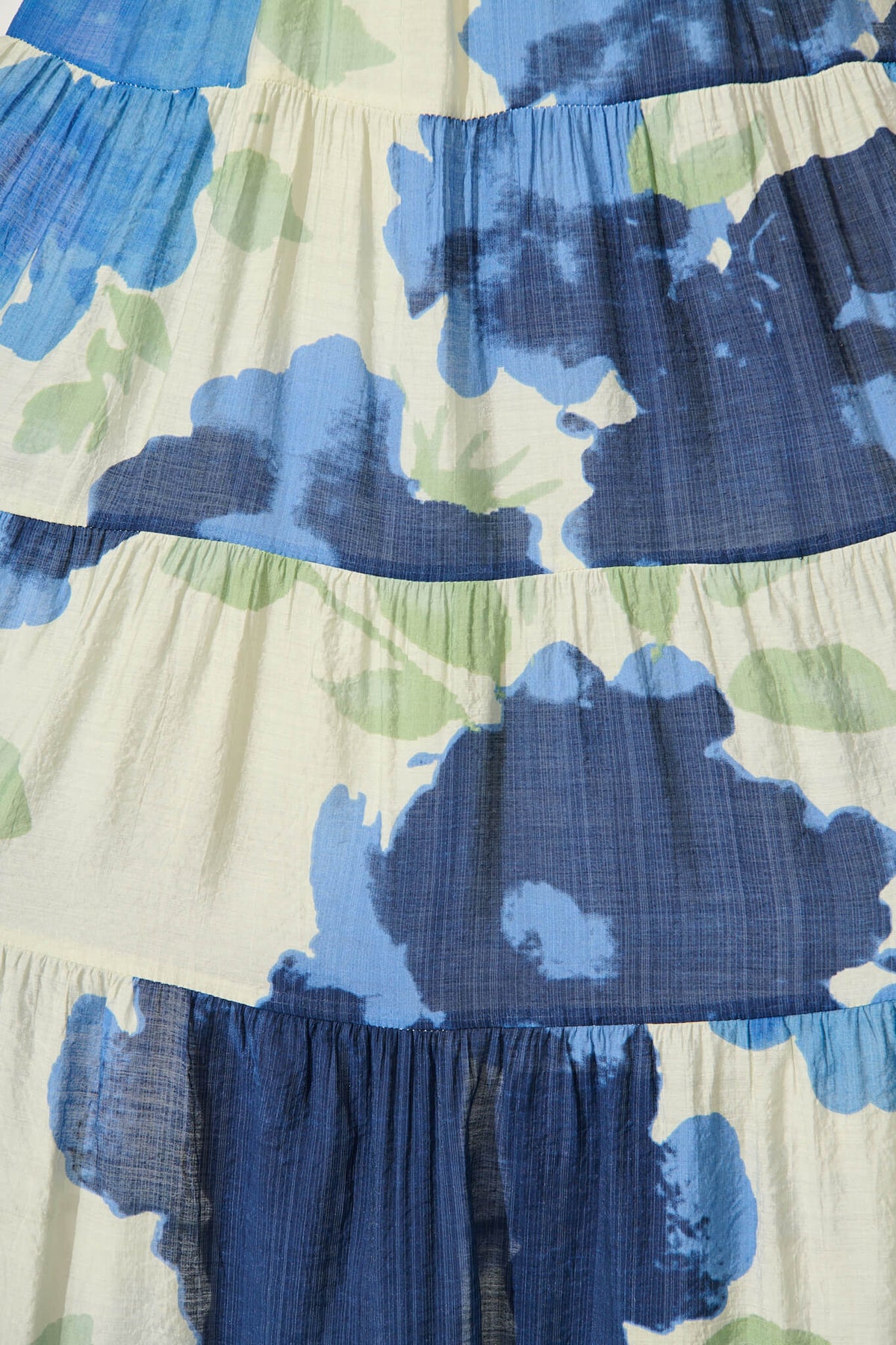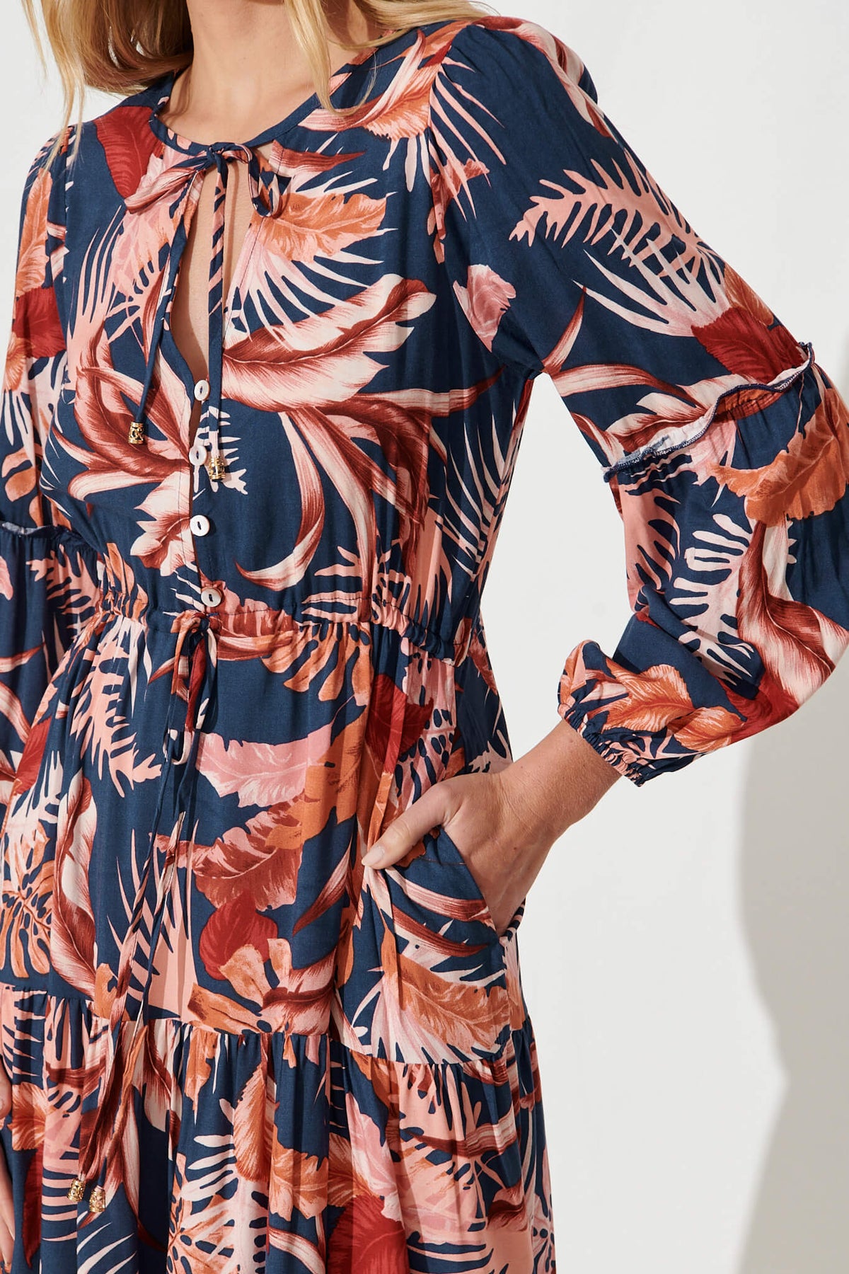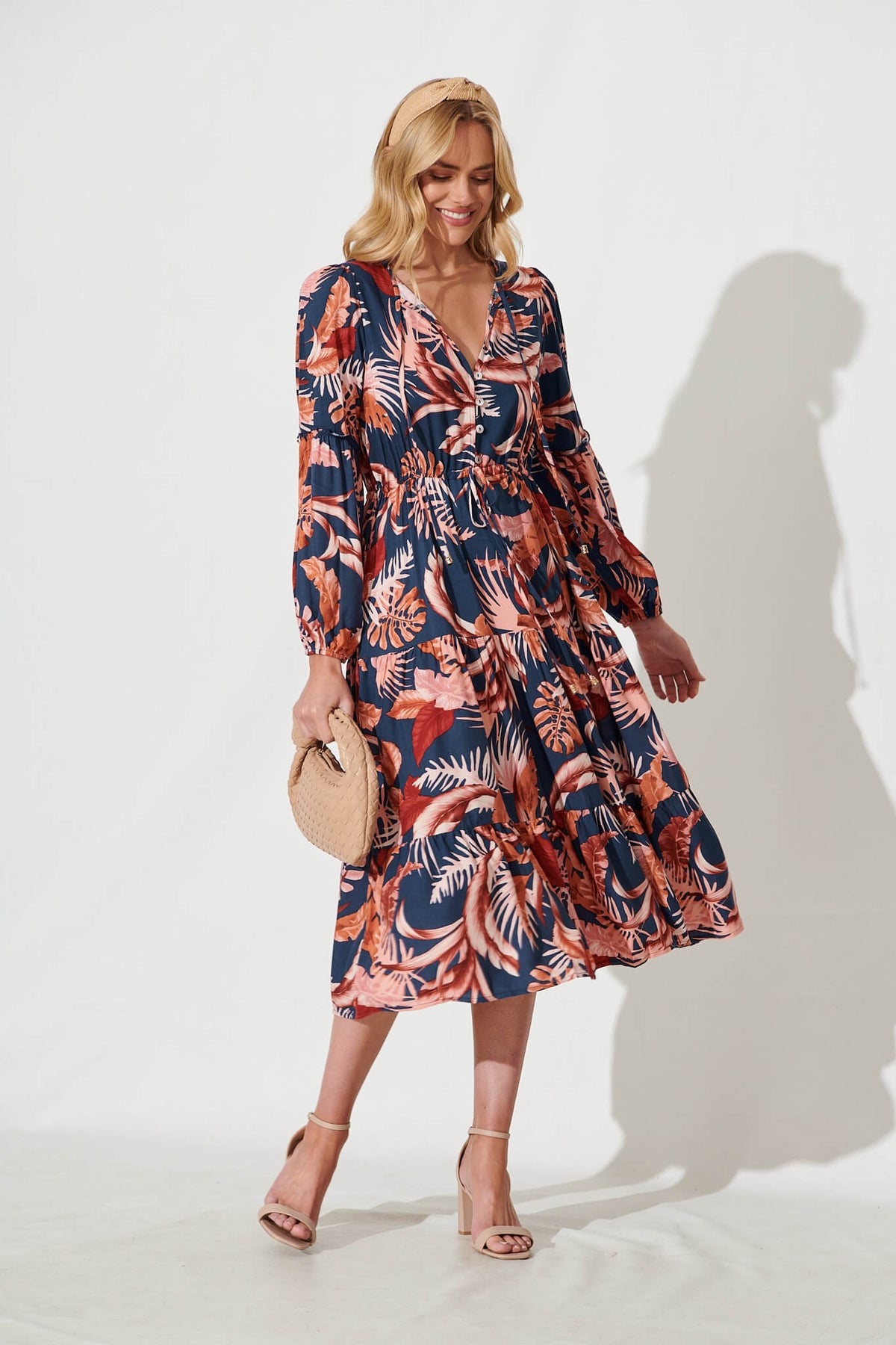 Vale Midi Dress In Blue With Multi Floral Cotton Blend