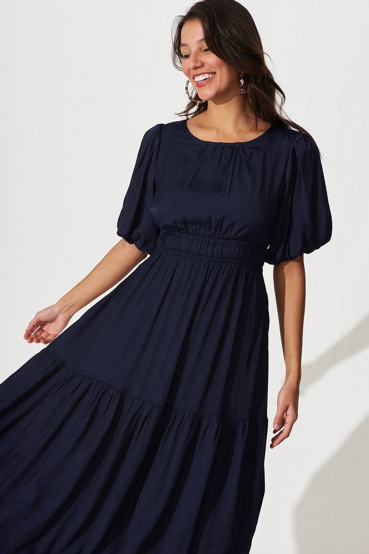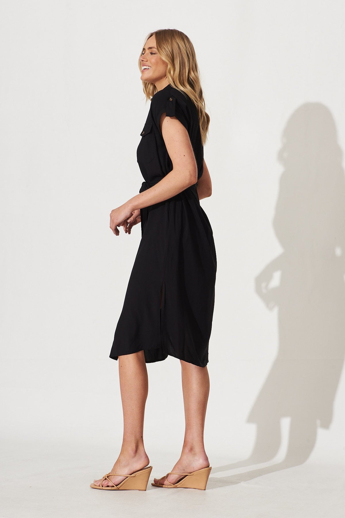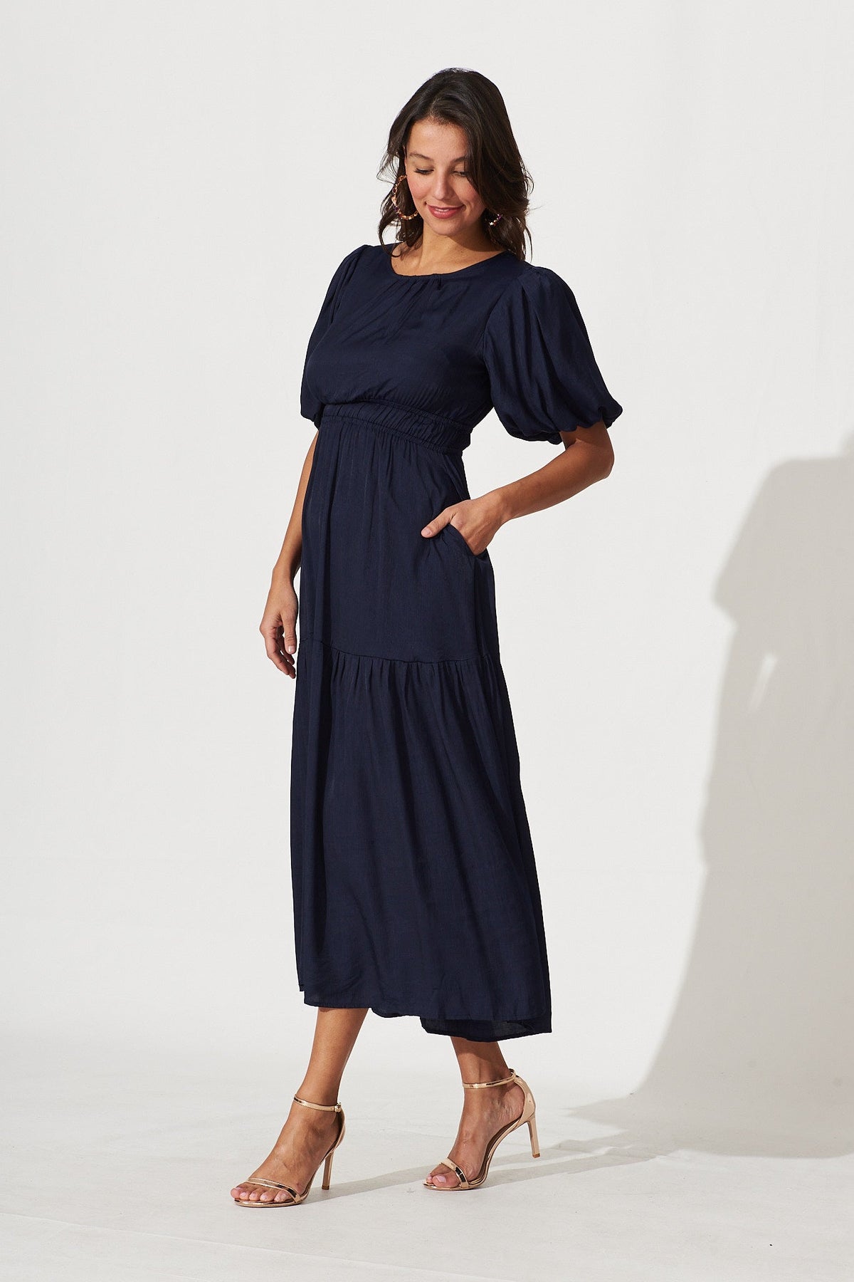 Cure your wardrobe blues with our gorgeous Quentin Midi Dress! The stunning pull on style, body loving shape and twin side pockets makes this the perfect occasion look! Pair with your favourite nude heels and statement earring for an effortless look.