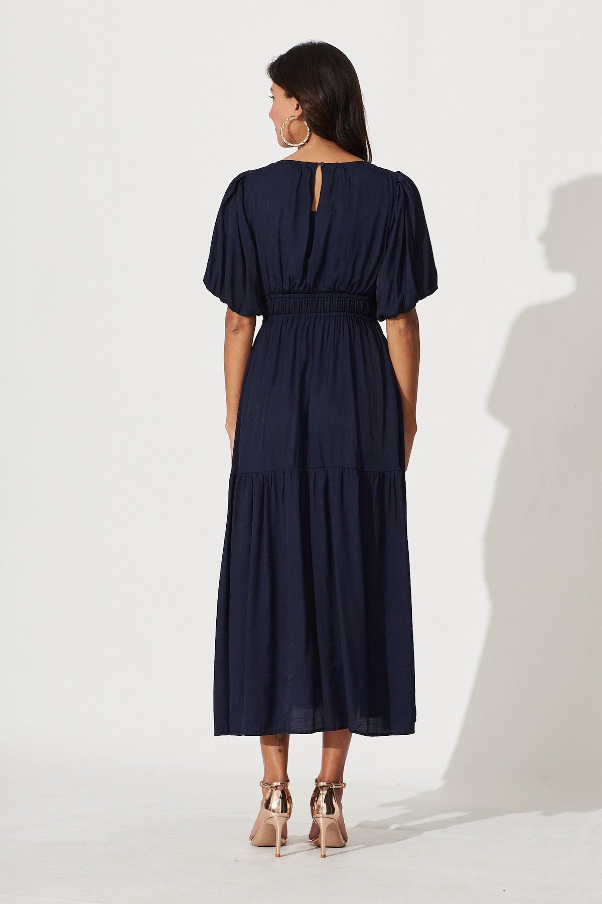 Try not to play favourites! You will find yourself wearing our Opulence Midi Dress all year round to all of you special events! An easy to wear style with its flattering V-neckline and shirred waist. Wear with a pair of ankle boots and cross body bag for a lunch date!