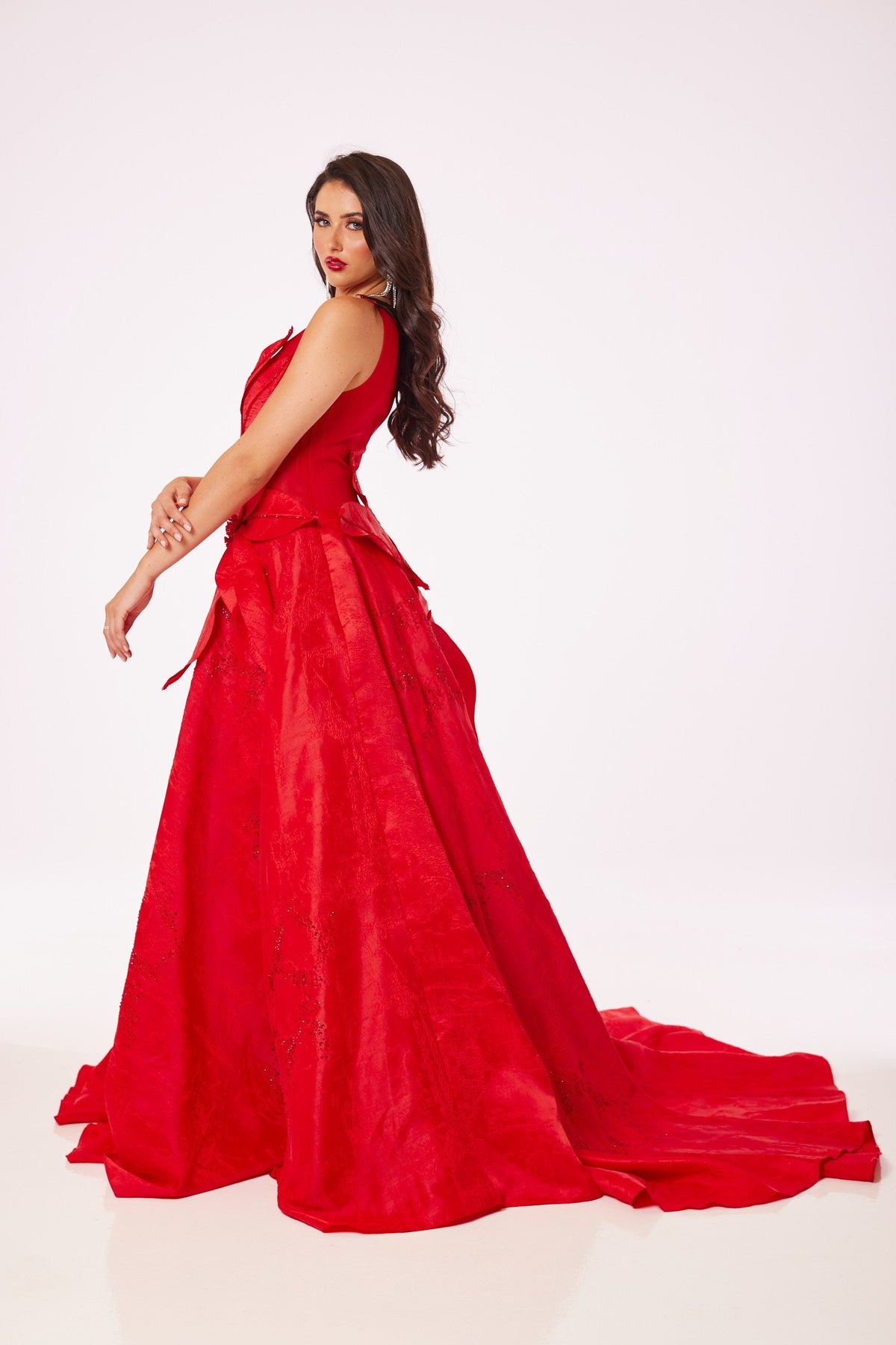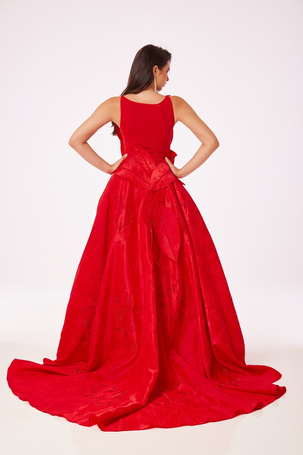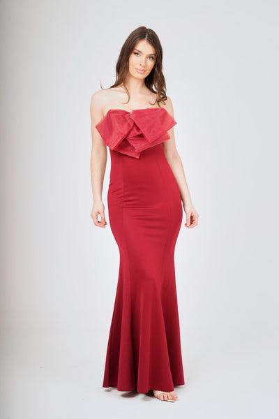 The bow-tie detail is uniquely beautiful, and the rich burgundy colour is simple and stunning. The hint of fishtail design makes it a perfect party piece; something you can wear anywhere, anytime.