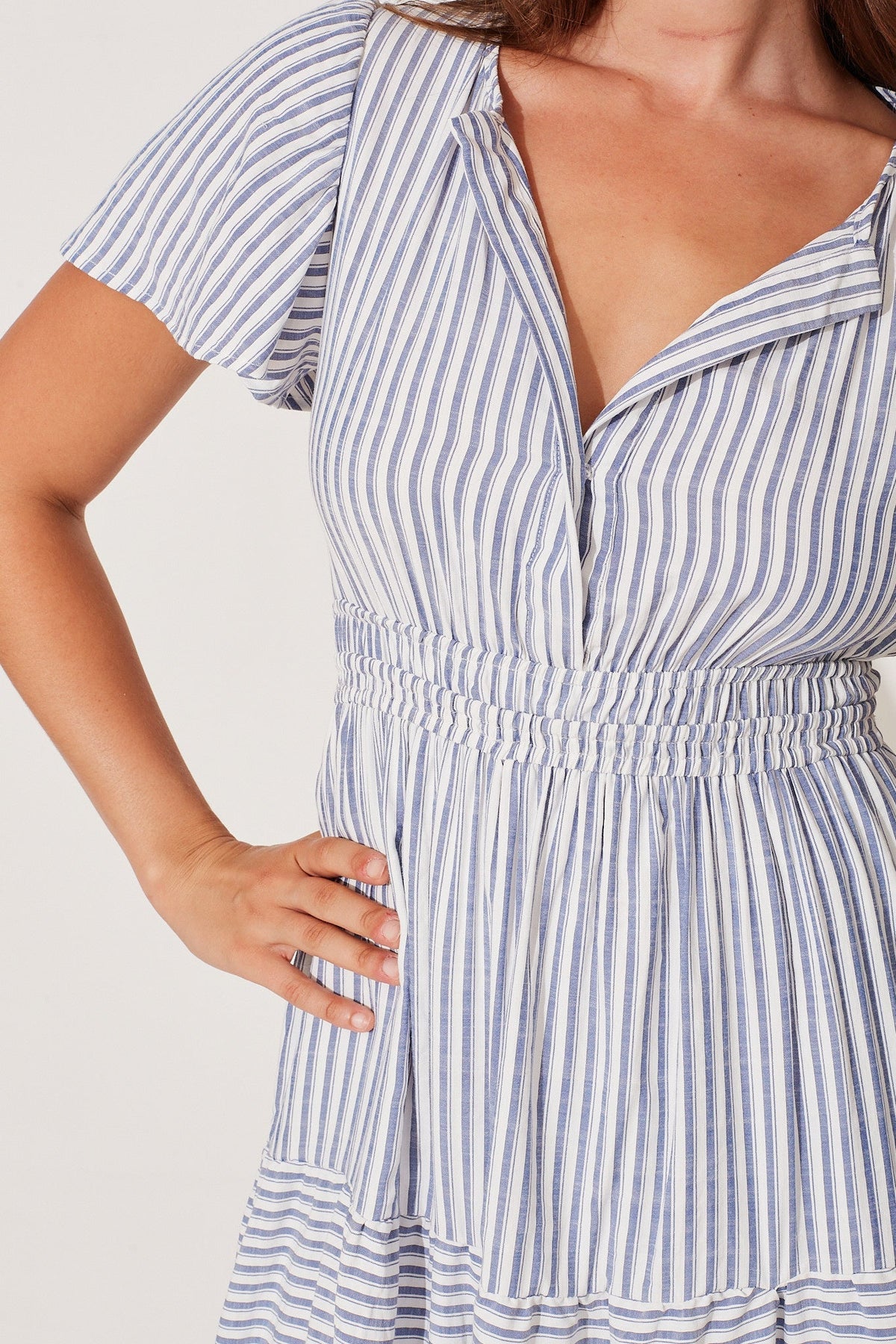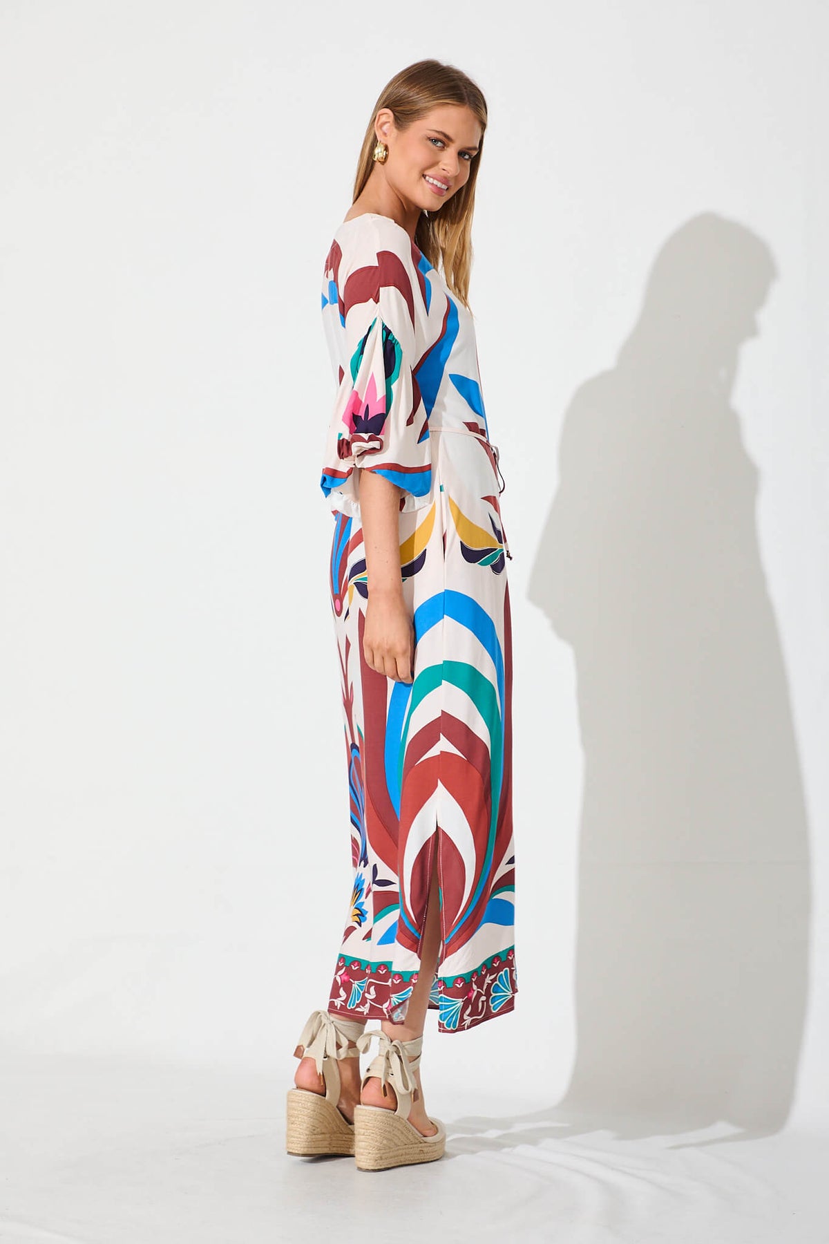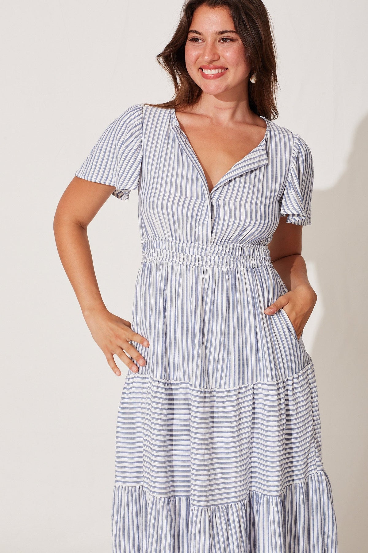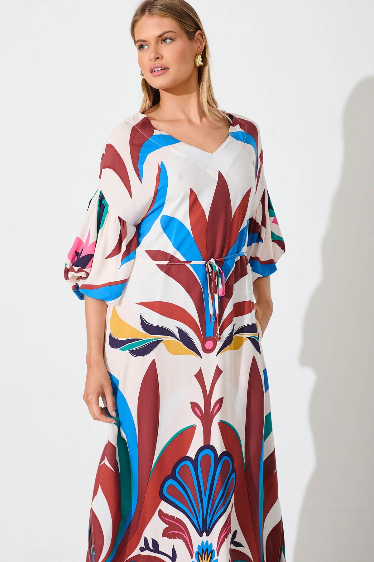 Rosalina Midi Dress With Belt In Multi Blue Floral