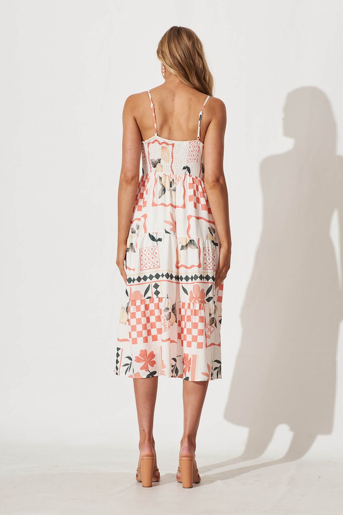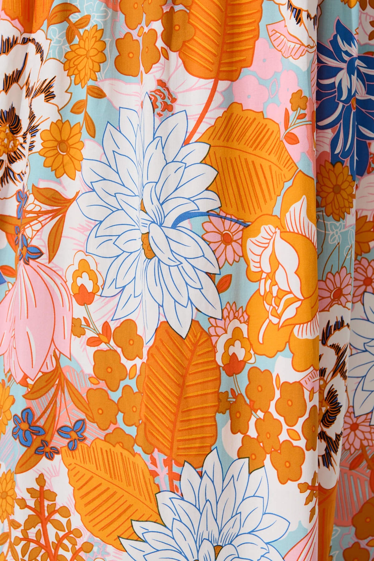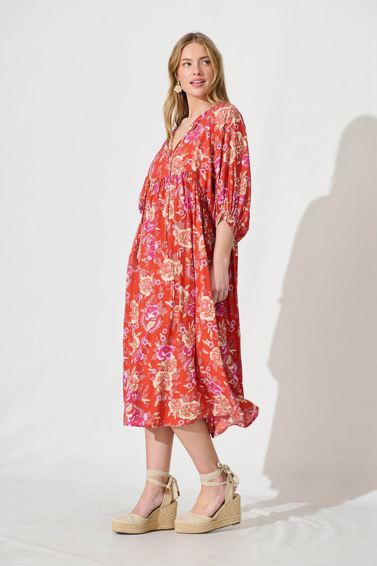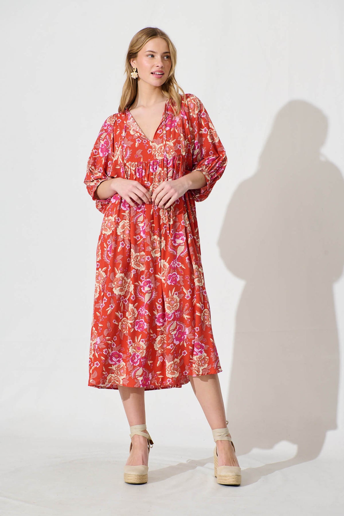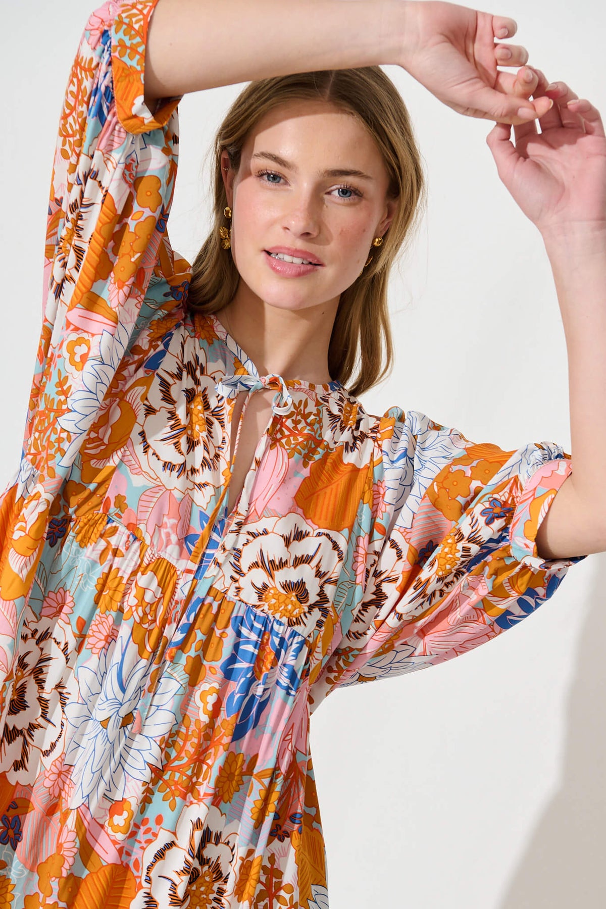 Spring Afternoon Midi Smock Dress In Orange Multi Floral