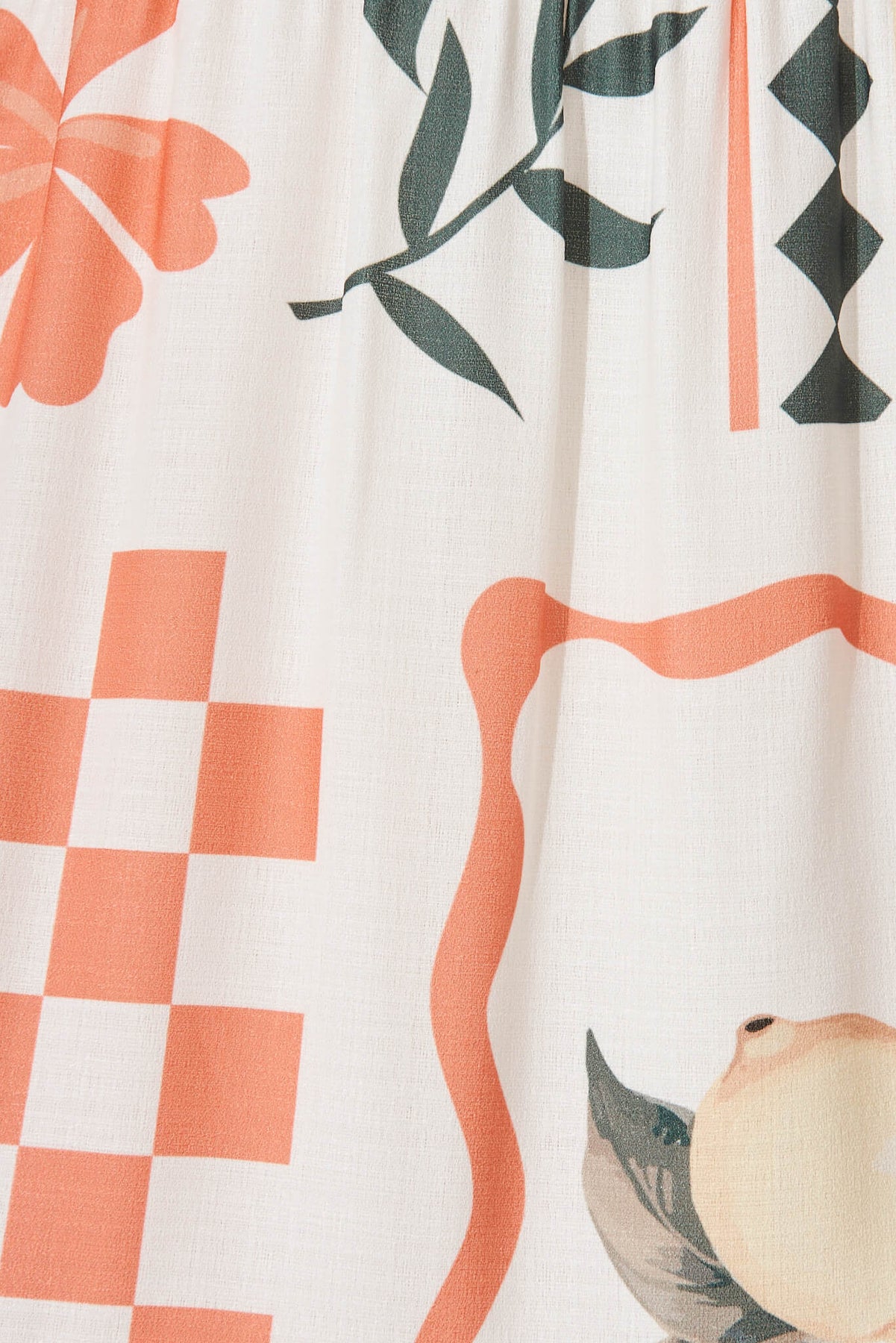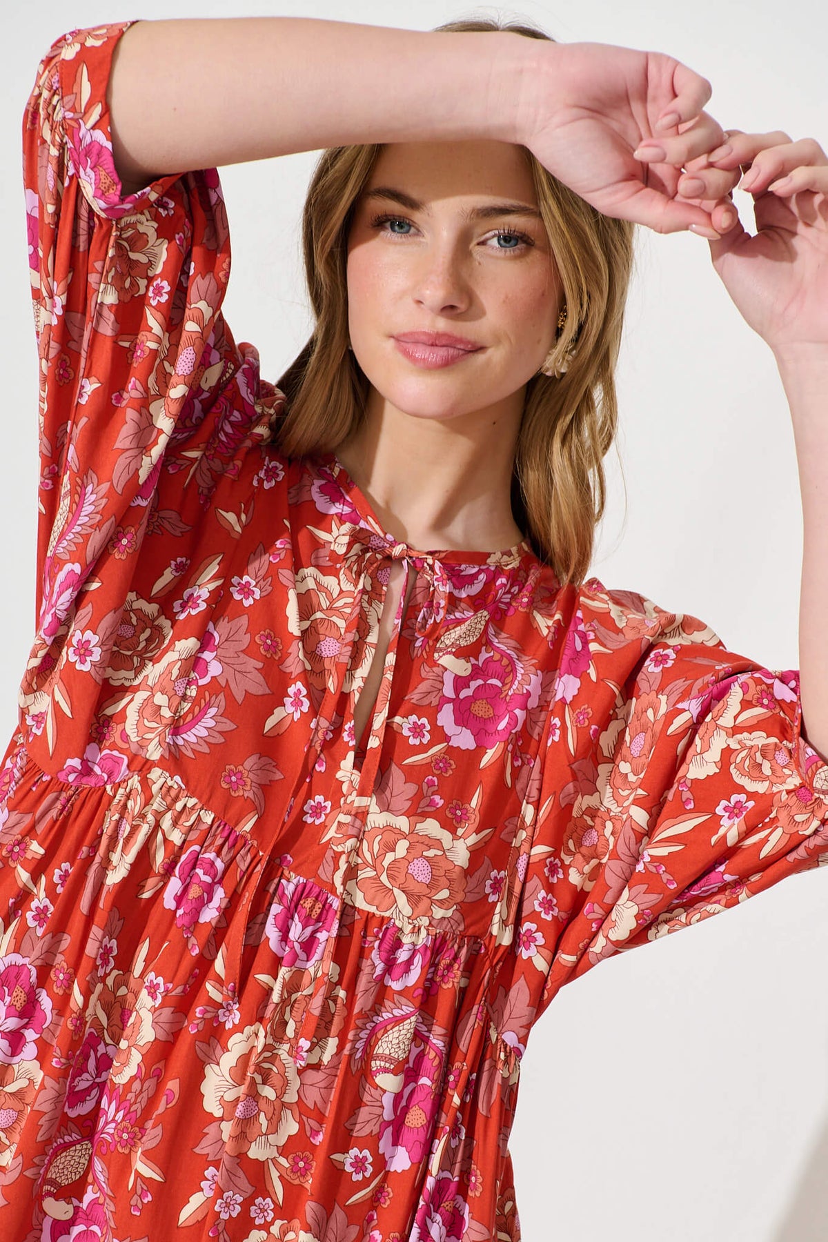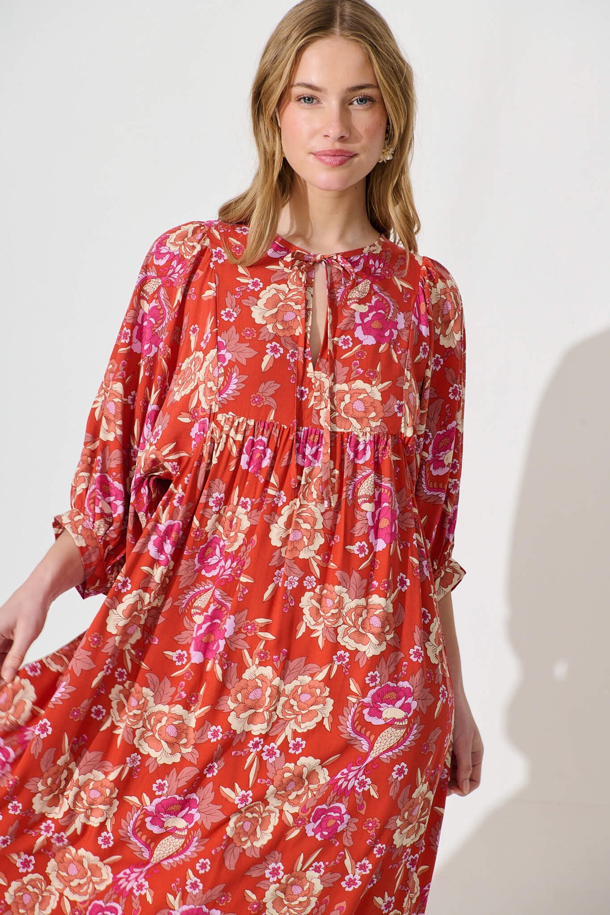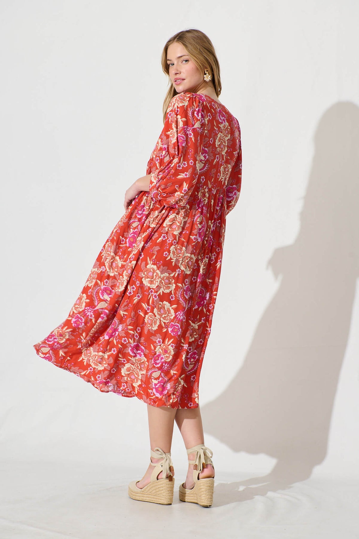 Spring Afternoon Midi Smock Dress In Orange Multi Floral