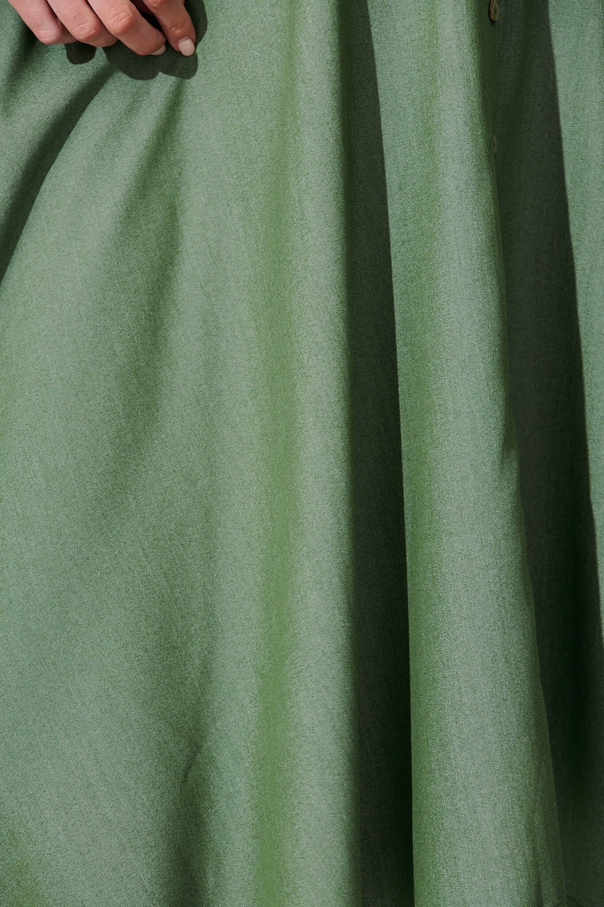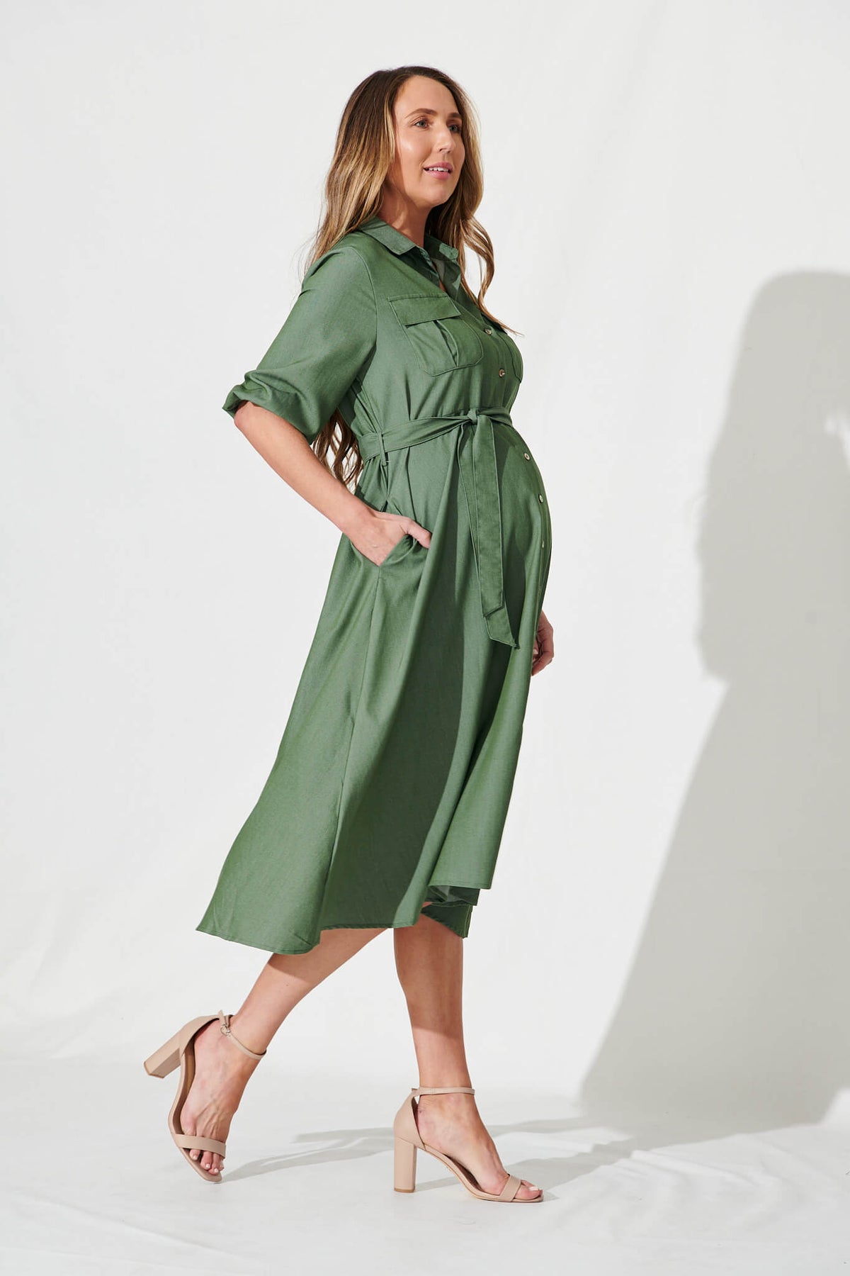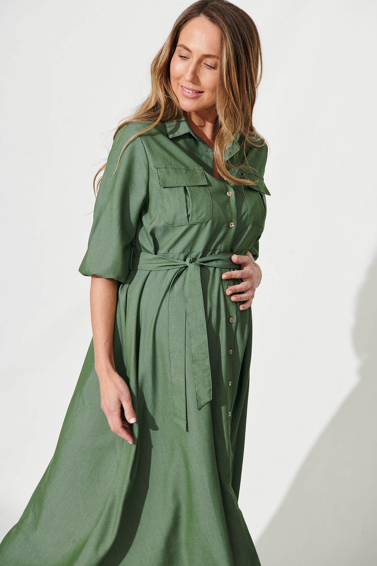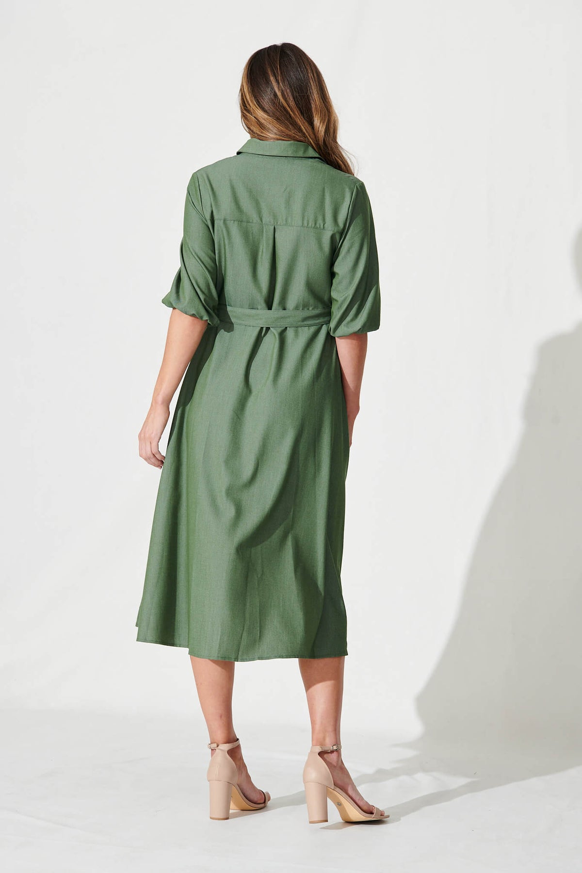 Spring Afternoon Midi Smock Dress In Green With White Print