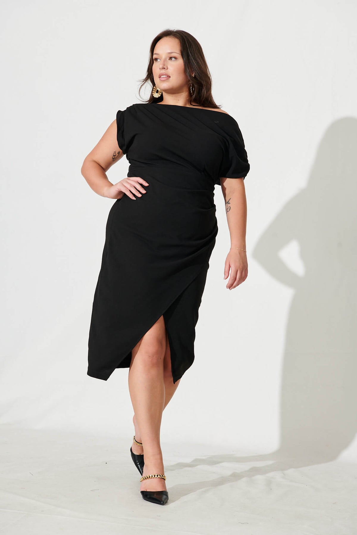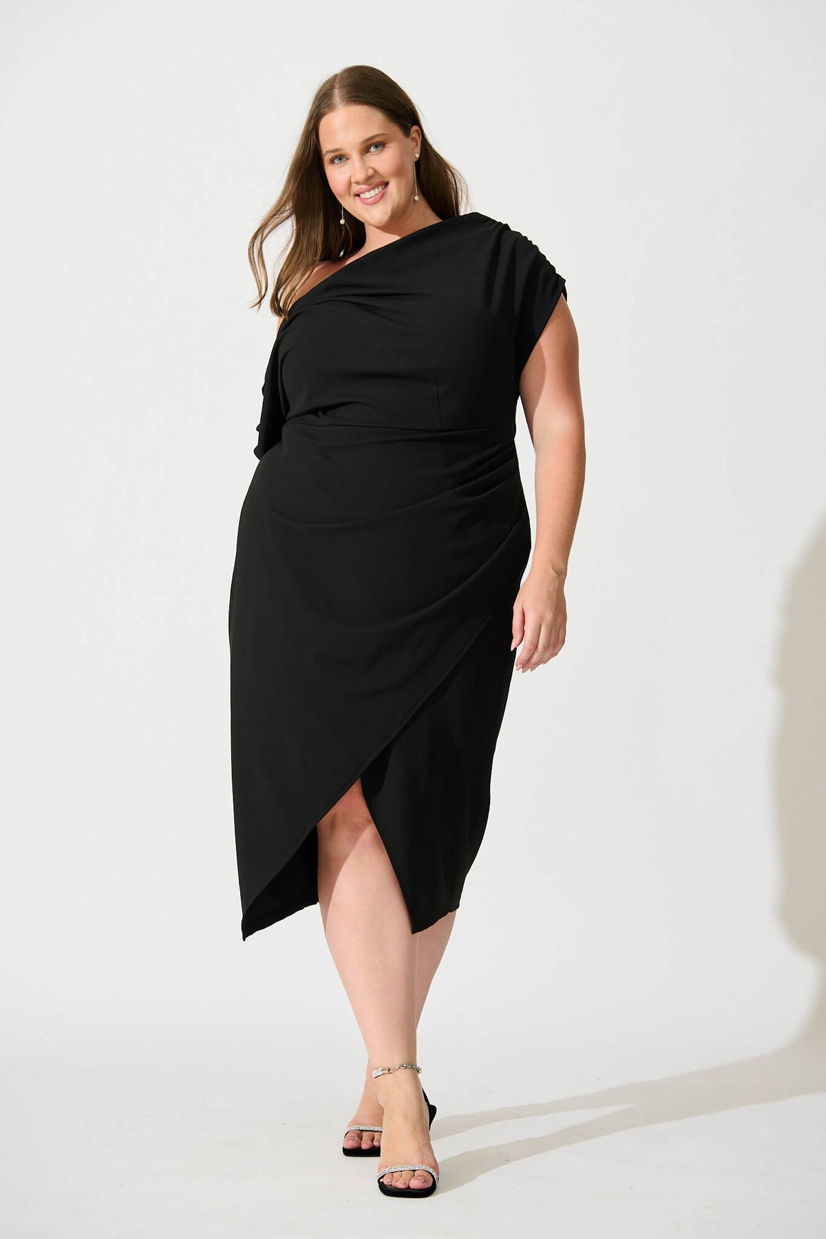 Just think of all the compliments you will get in our stunning Phoenix Off Shoulder Midi Dress. Striking asymmetrical neckline, tick! wrap skirt, tick! Flattering side gathering, tick! This dress will have you instantly ready and out the door for your next special occasion!
