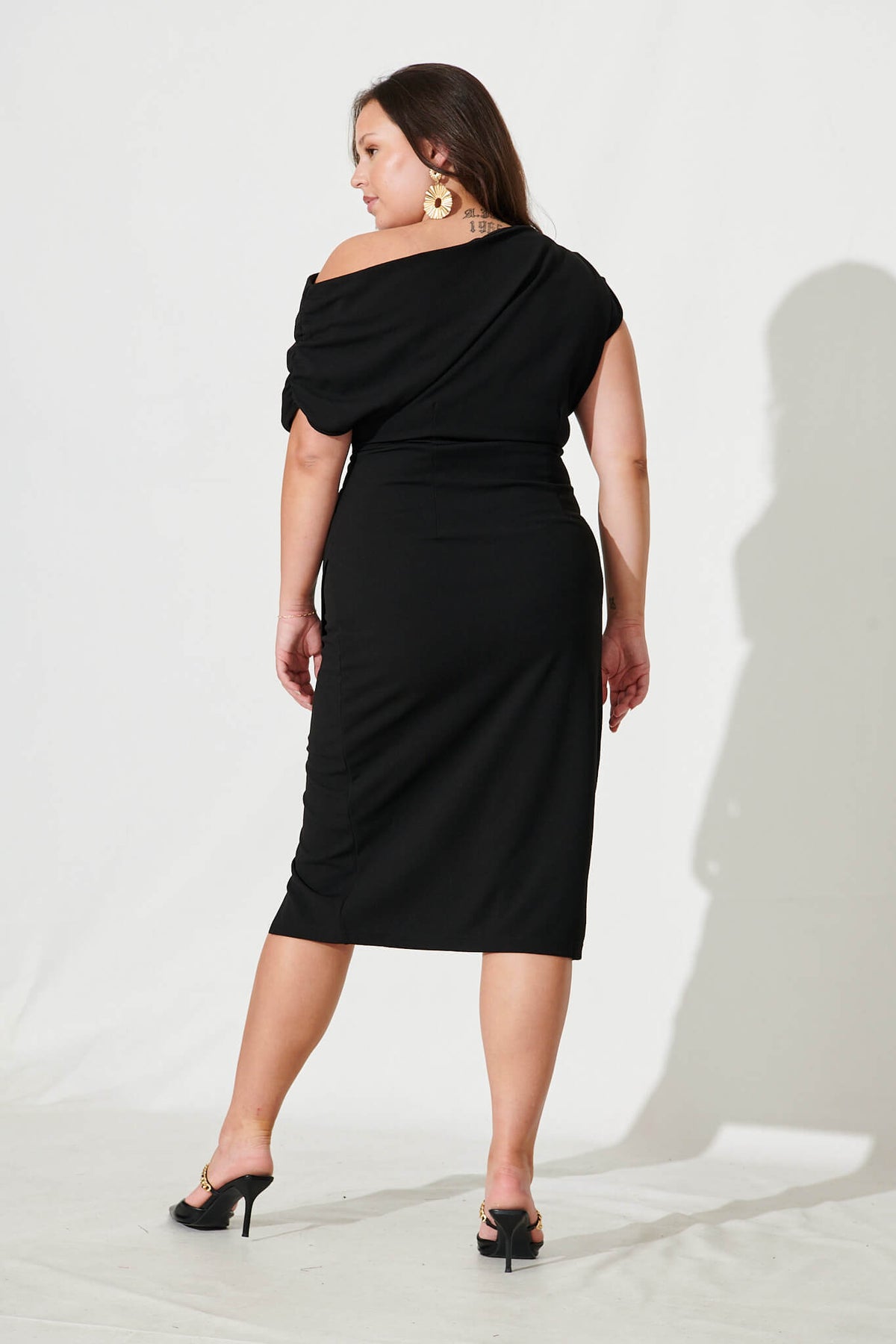 Earn some serious style points in our Phoenix Off Shoulder Midi Dress. This figure flattering ensemble will quickly become one of your favourite throw on and go outfits! Wear with strappy heels and statement earrings - you'll be sure to turn heads!
