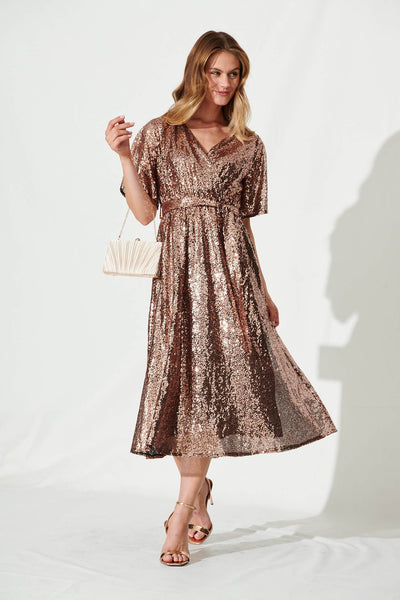 Sparkle and shine, our Winslet Midi Dress is a sure way to elevate your party wardrobe. Made from a magical sequin fabric, she features a elastic waistband, lining and a mid-length skirt that is perfect for twirling. Team with your sparkly dancing shoes and a little leatherette jacket for trans-seasonal weather
