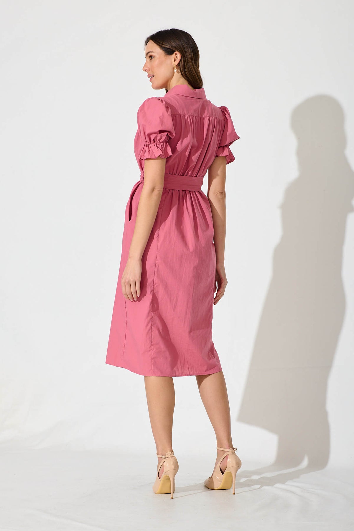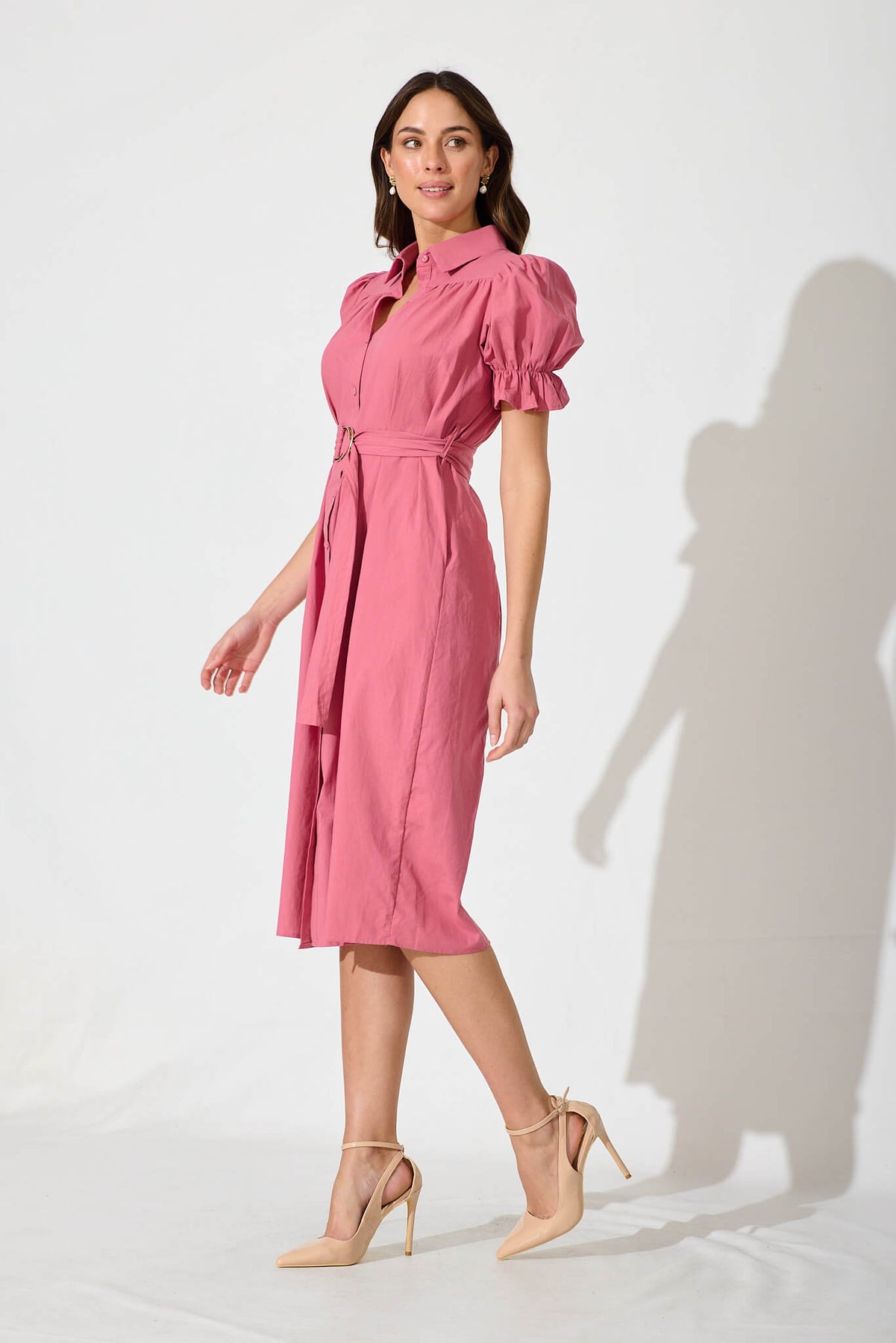 Radiate elegance in our Nirvana Midi Shirt Dress! It's a super versatile addition to your wardrobe and can be worn to any special occasion! Wear yours with your favourite stilettos, a cute clutch, & statement earring!