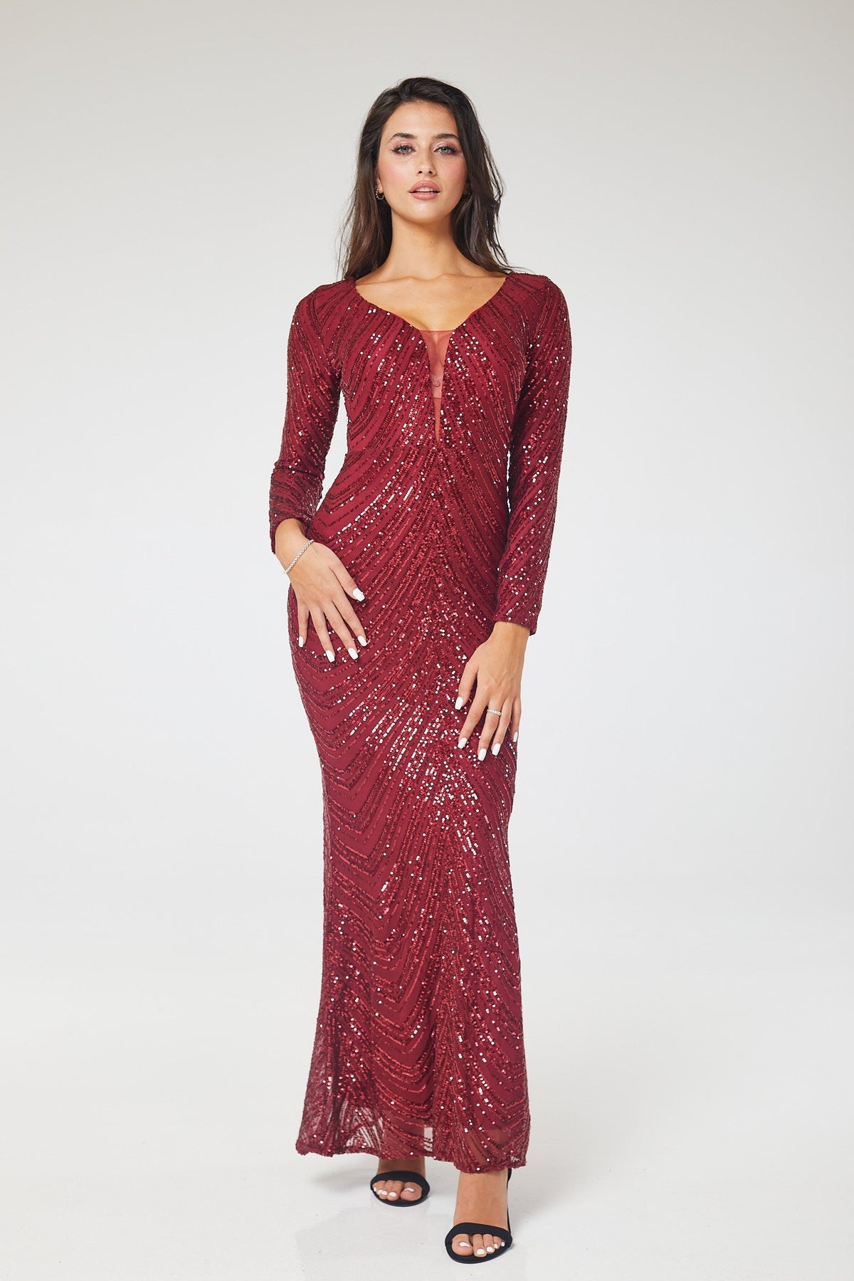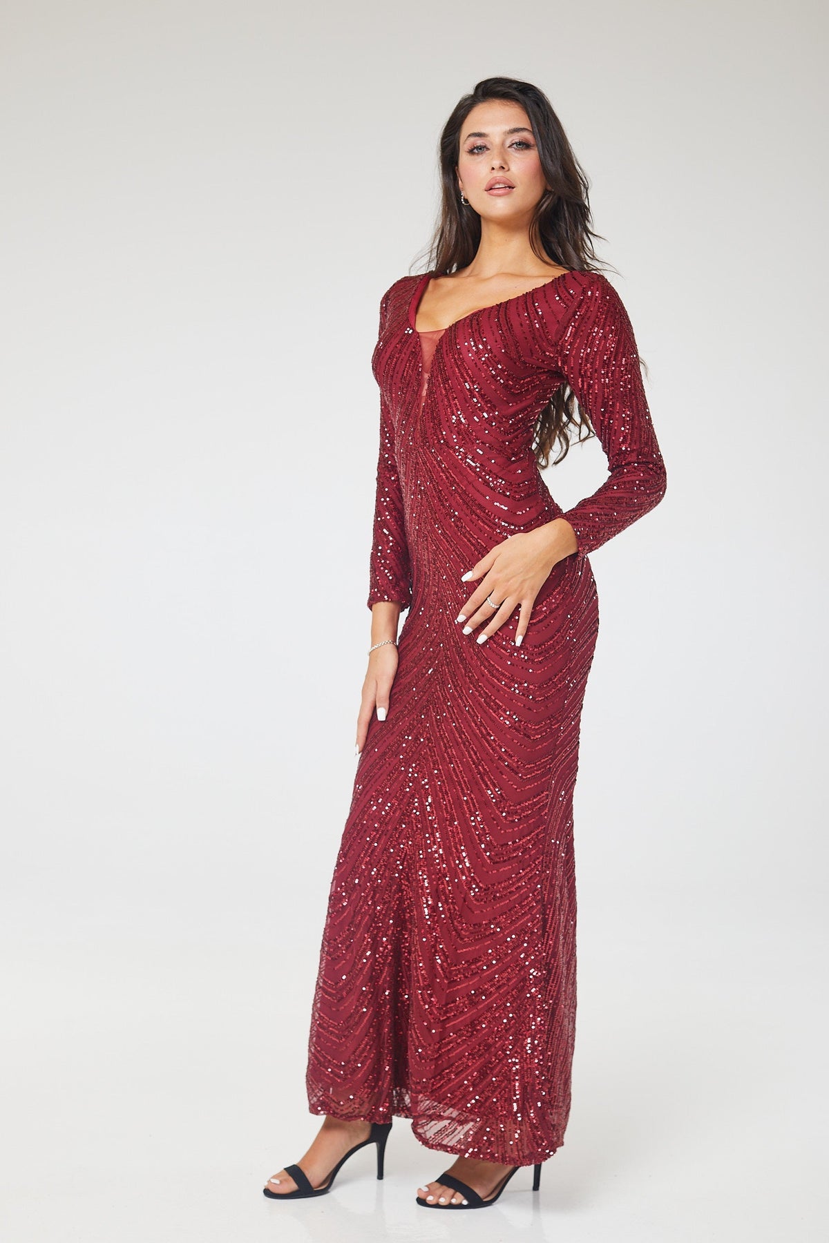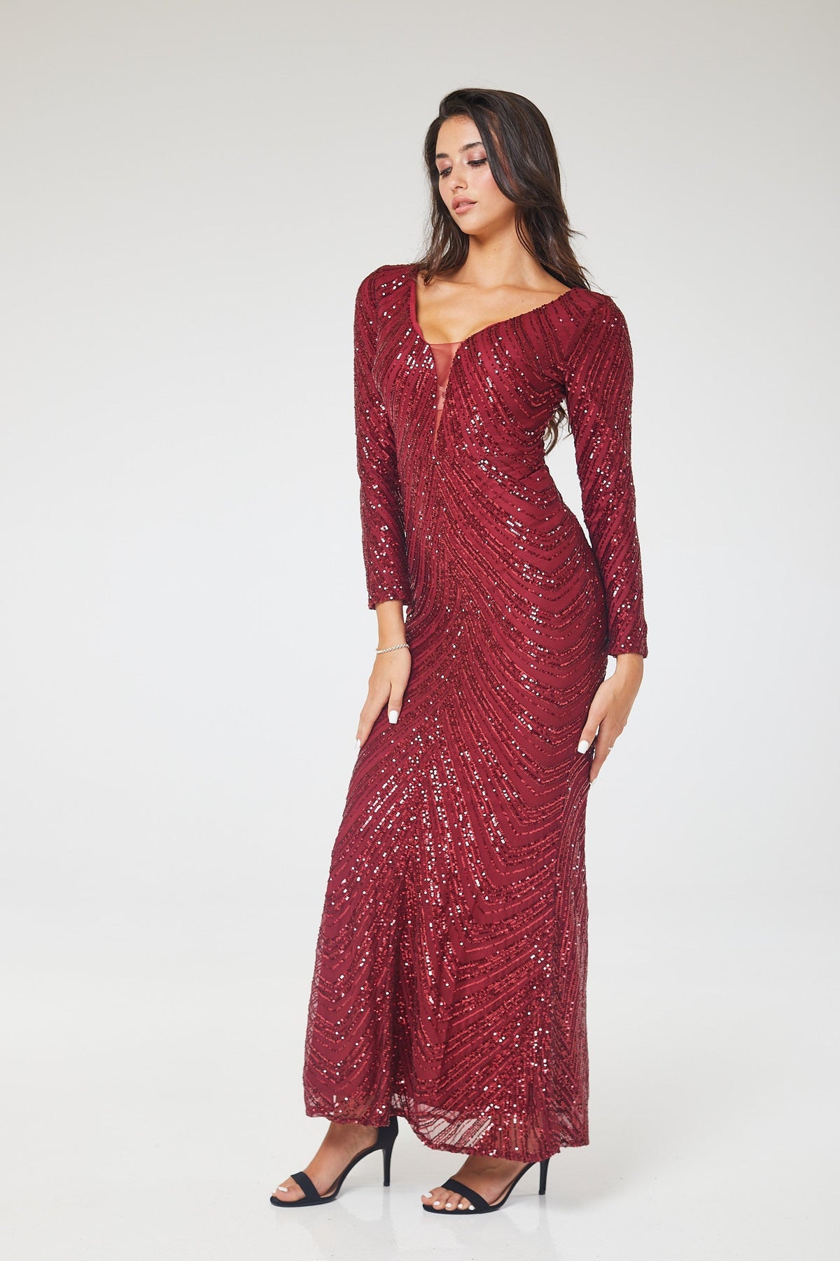 Make your entrance with this glamorous maxi piece. The maxi length with the elegant long sleeves makes for a truly beautiful look. The sequinned detail as well as the V-Neckline complete this beautiful style.
